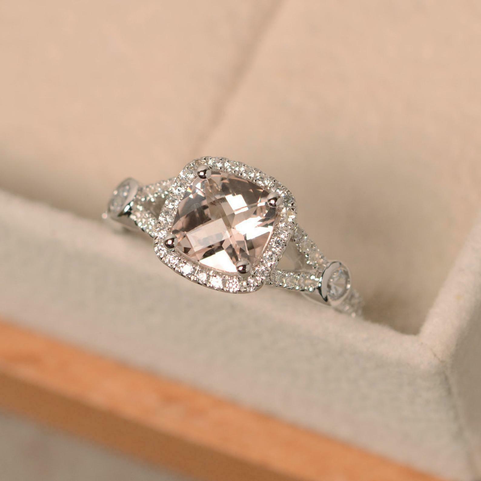 2ct Engagement Ring Cushion Cut Peach Morganite Diamond Halo 14k White Gold Over