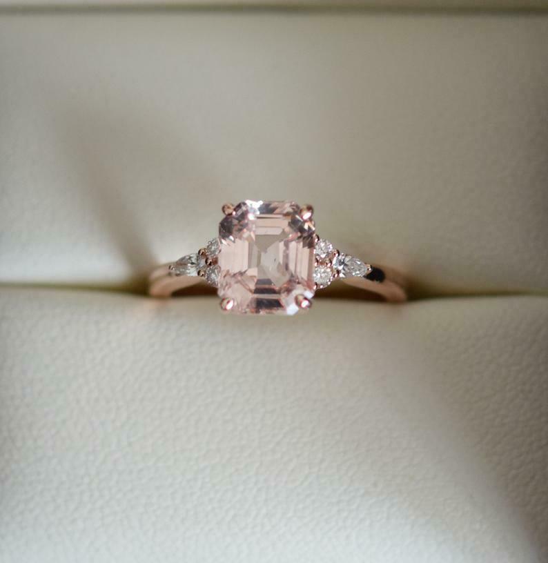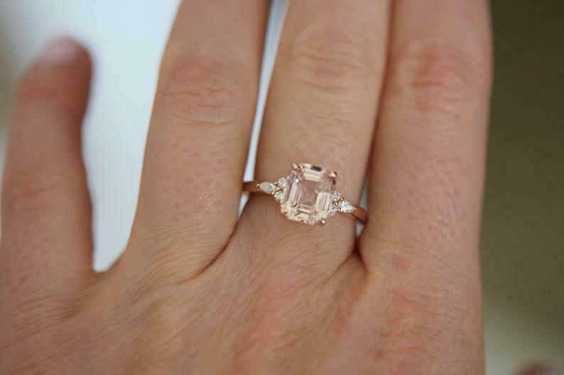 2ct Engagement Ring Emerald Cut Peach Morganite Diamond Accent 14k RoseGold Over