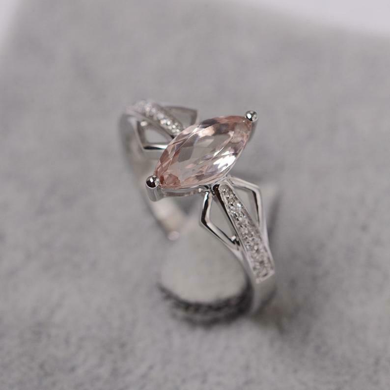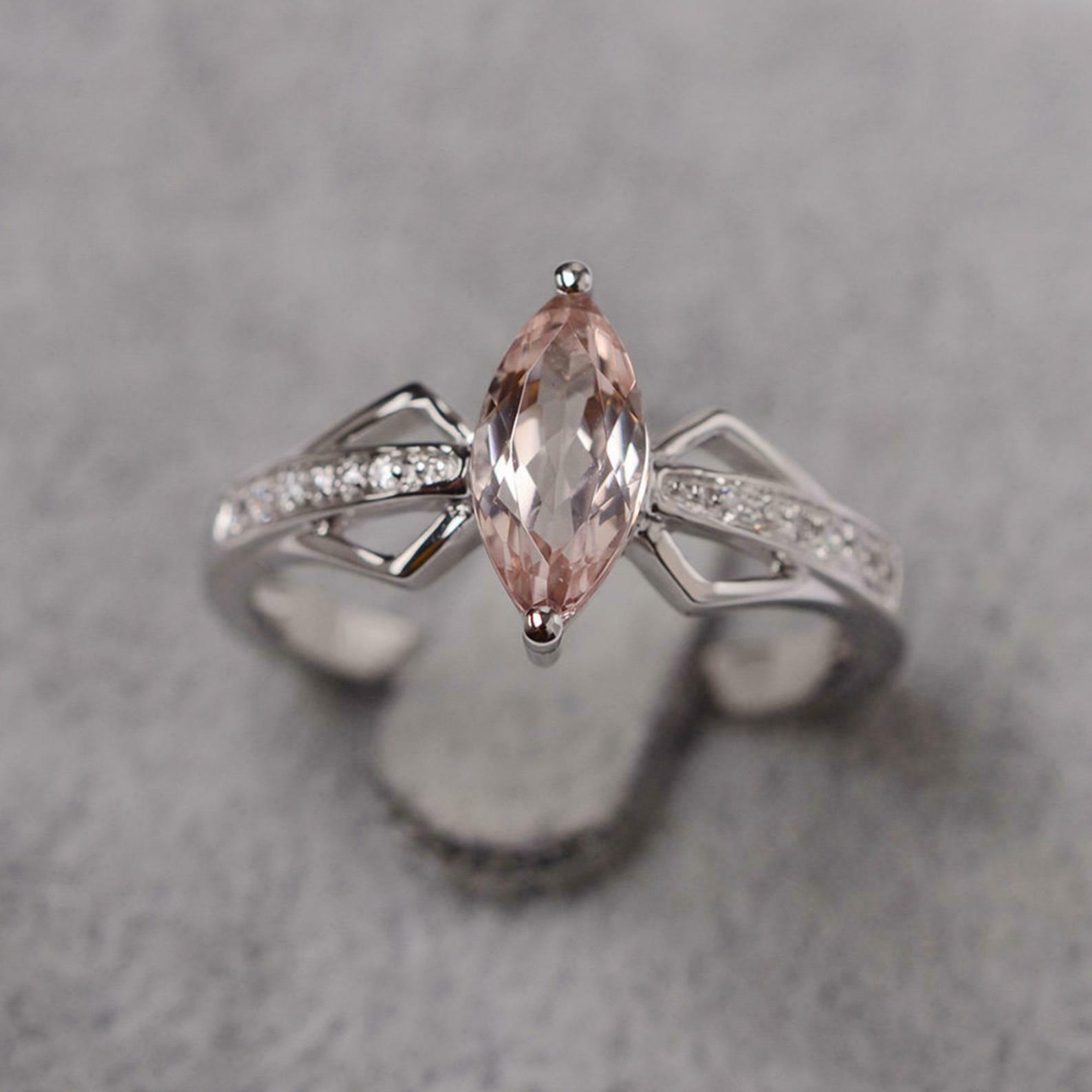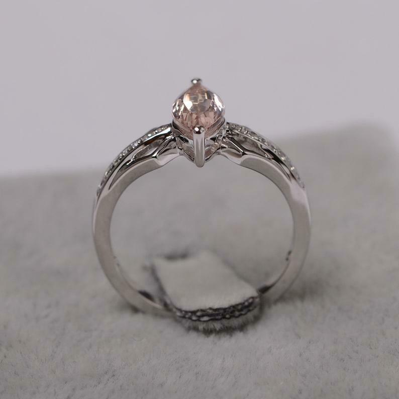 2ct Engagement Ring Marquise Cut Peach Morganite Split Shank 14k White Gold Over