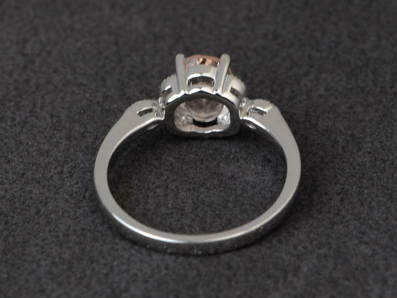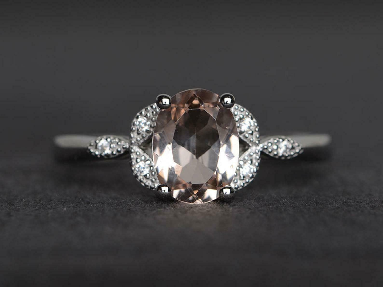 2ct Engagement Ring Oval Cut Peach Morganite Leaf Accent Solitaire 14k White Gold Over