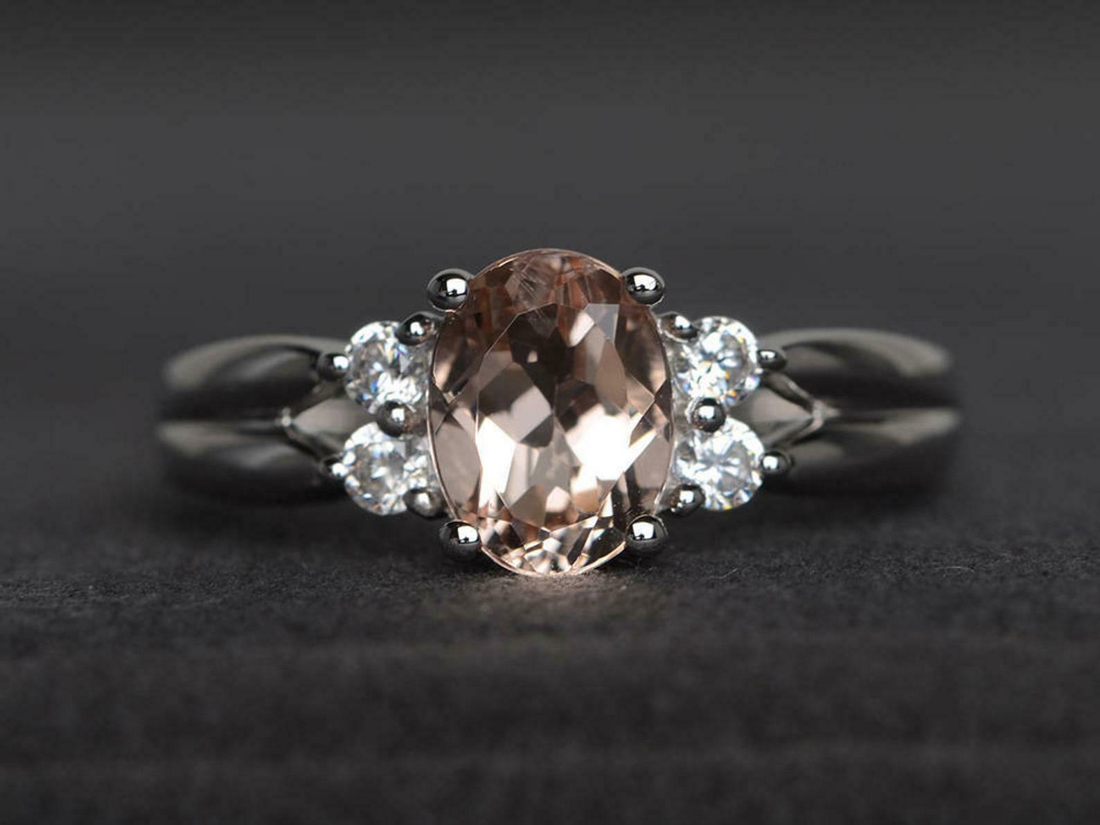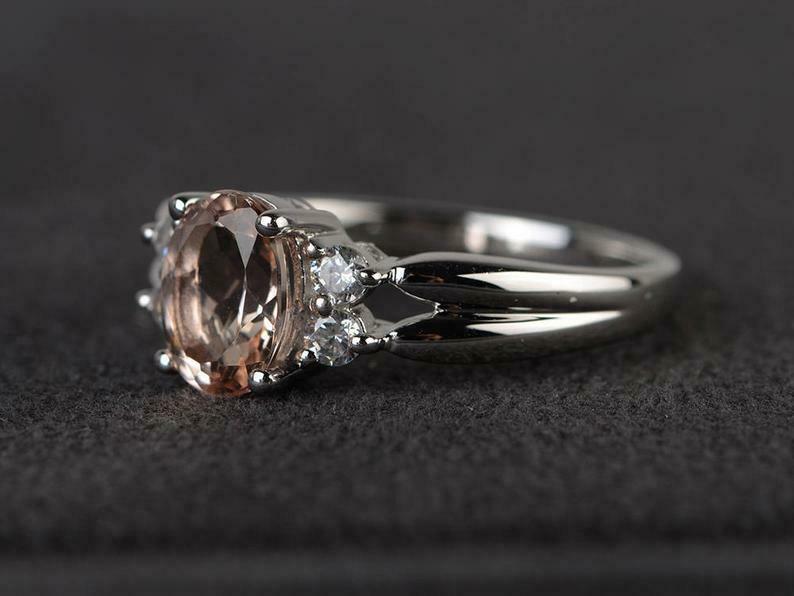2ct Engagement Ring Oval Cut Peach Morganite Stylish Solitaire 14k White Gold Finish