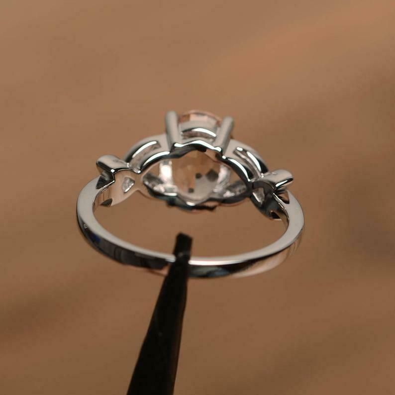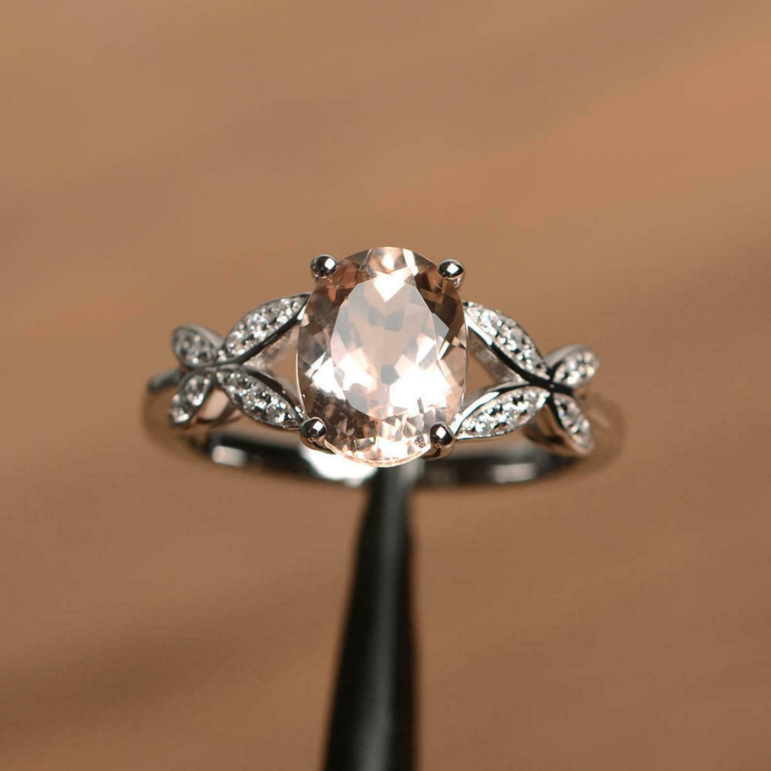 2ct Engagement Ring Oval Cut Peach Morganite Butterfly Accent 14k WhiteGold Over
