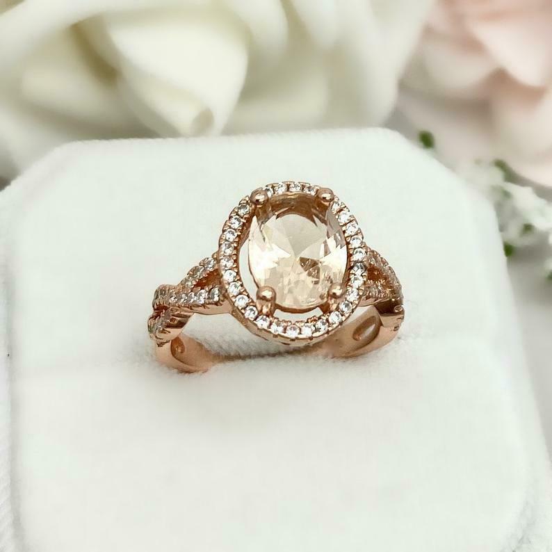 2ct Engagement Ring Oval Cut Peach Morganite Infinity Halo 14k Rose Gold Finish