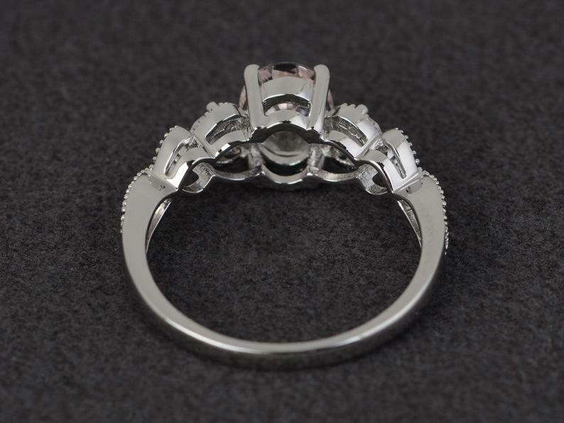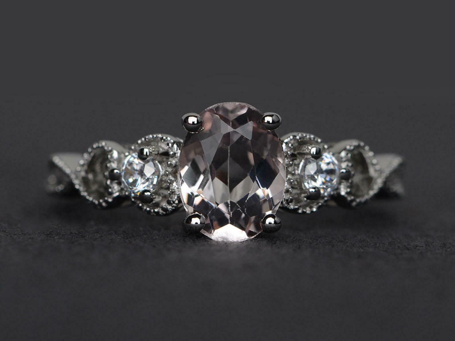 2ct Engagement Ring Oval Cut Peach Morganite Milgrain Trilogy 14k White Gold Over
