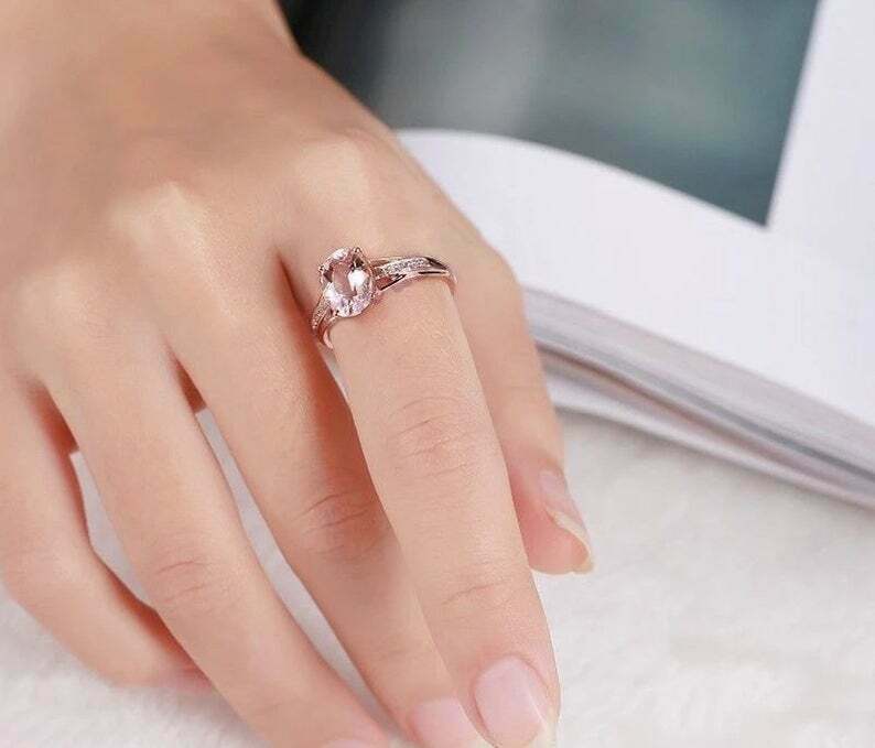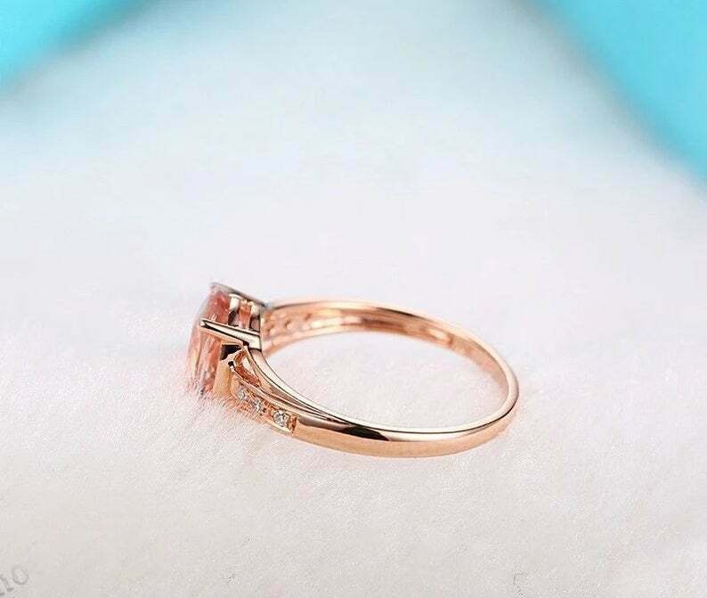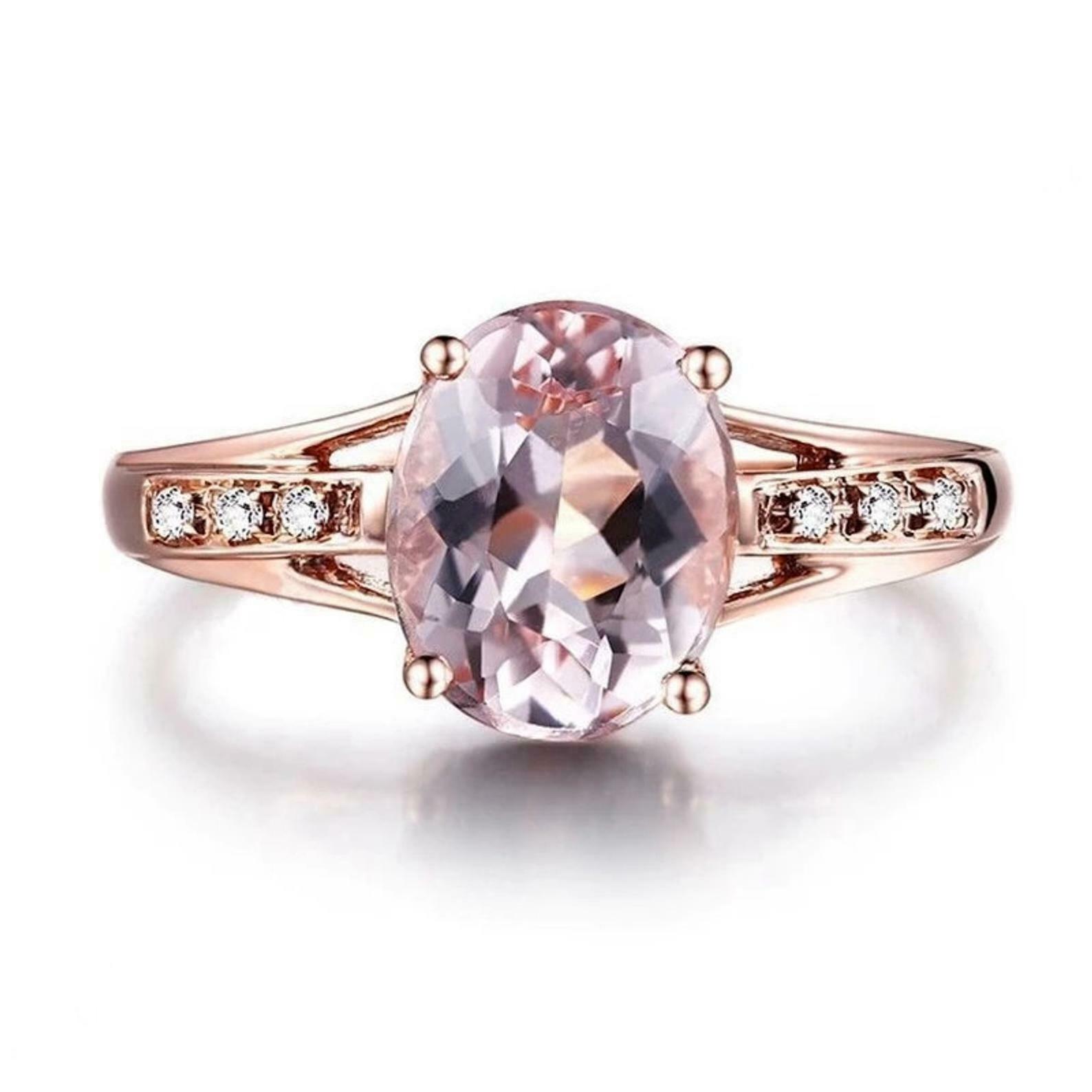 2ct Engagement Ring Oval Cut Peach Morganite Split Shank 14k Rose Gold Finish