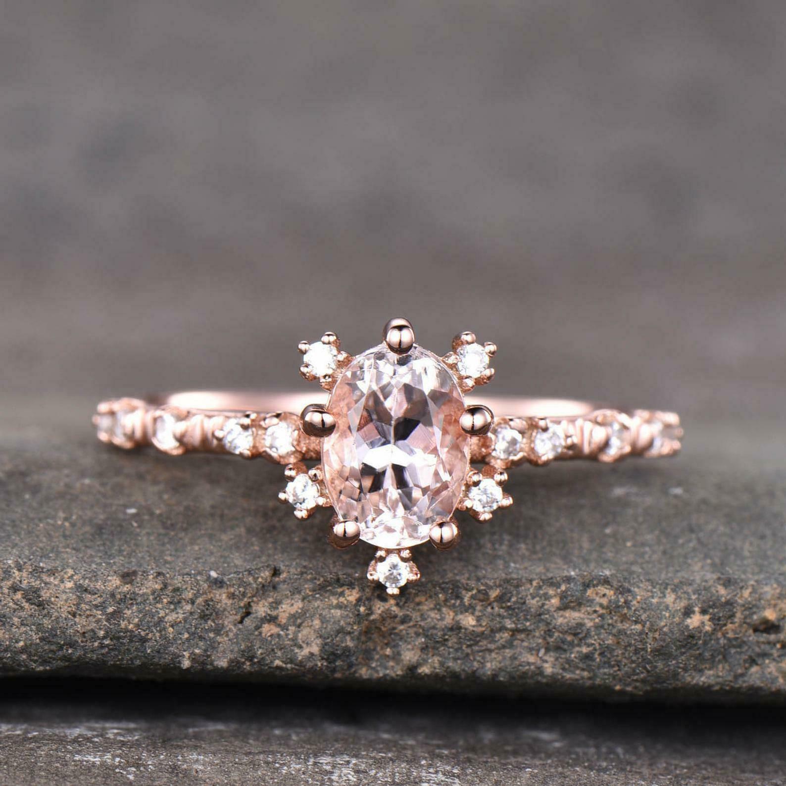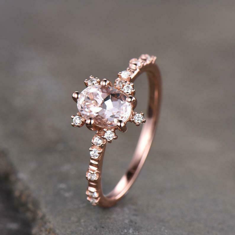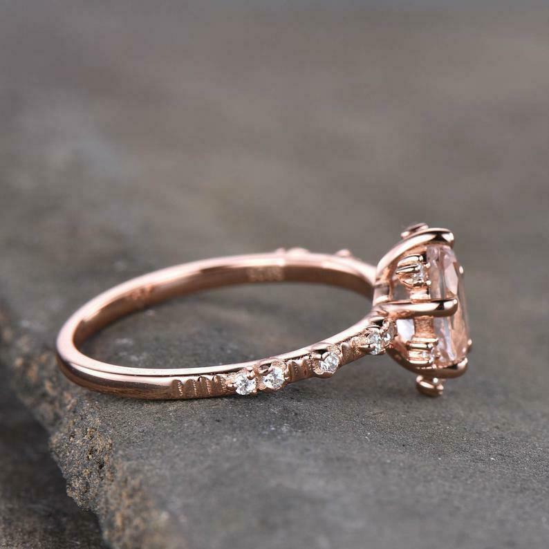 2ct Engagement Ring Oval Cut Peach Morganite Turtle Art Deco 14k Rose Gold Over