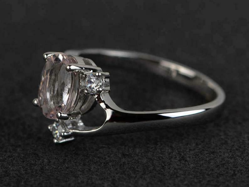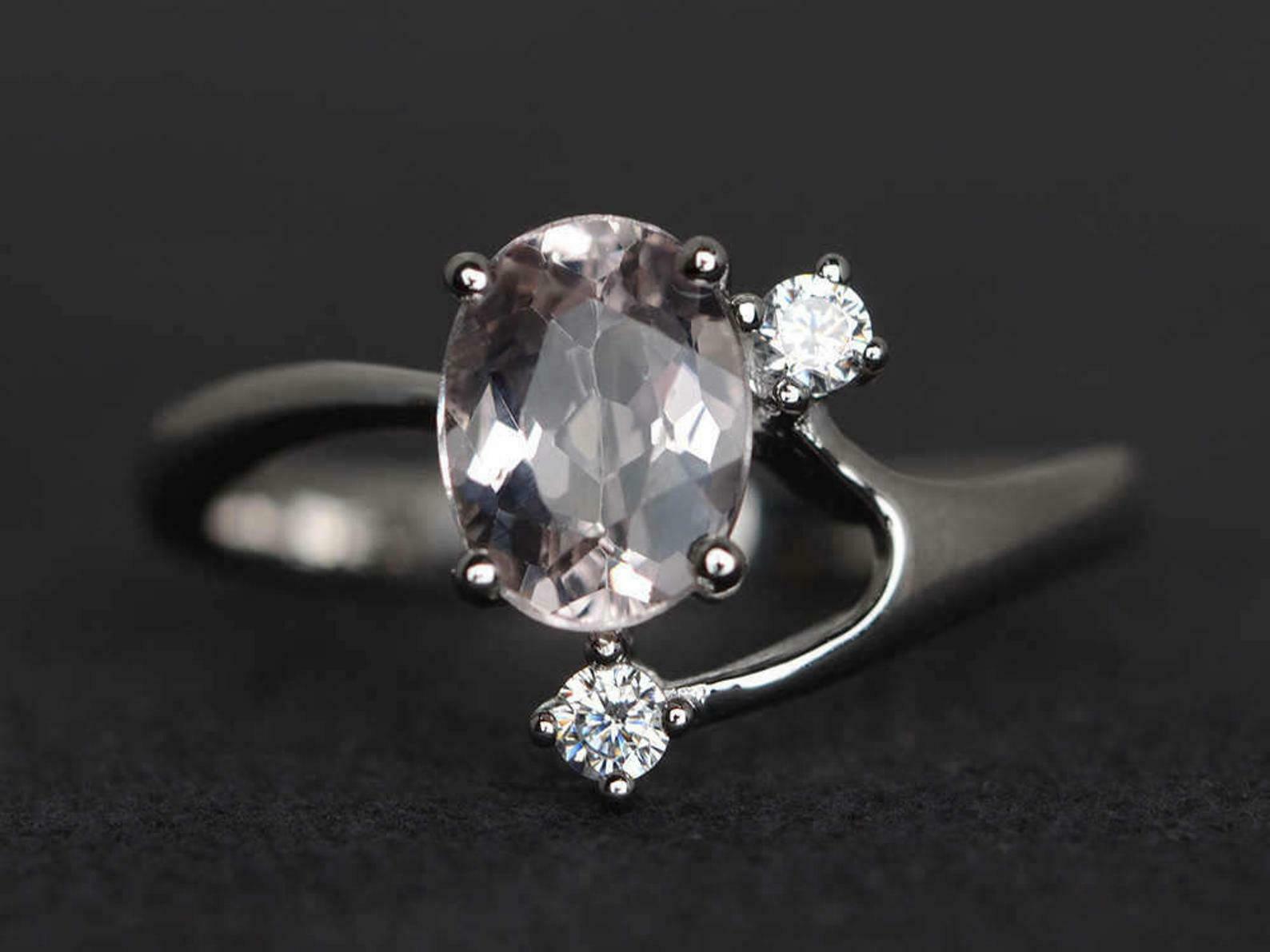 2ct Engagement Ring Oval Cut Peach Morganite Twig Floral 14k White Gold Finish