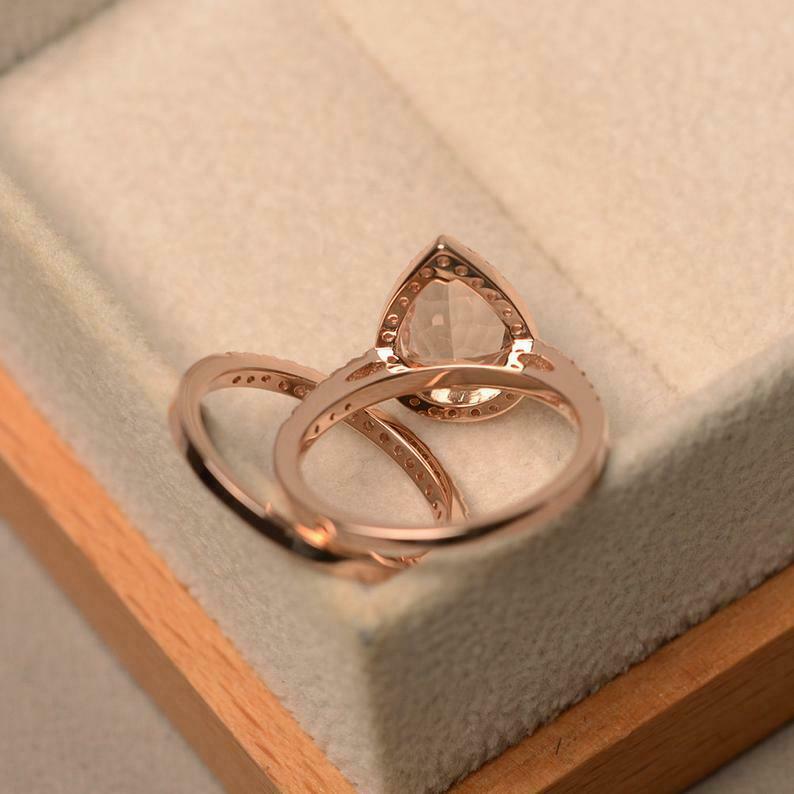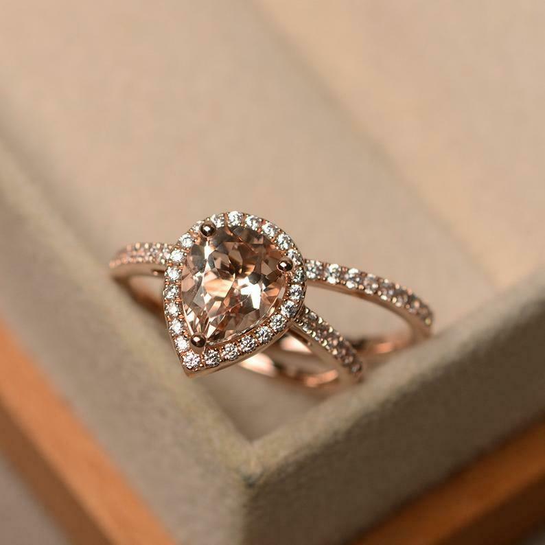 2ct Engagement Ring Pear Cut Peach Morganite Halo Bridal Set 14k RoseGold Finish