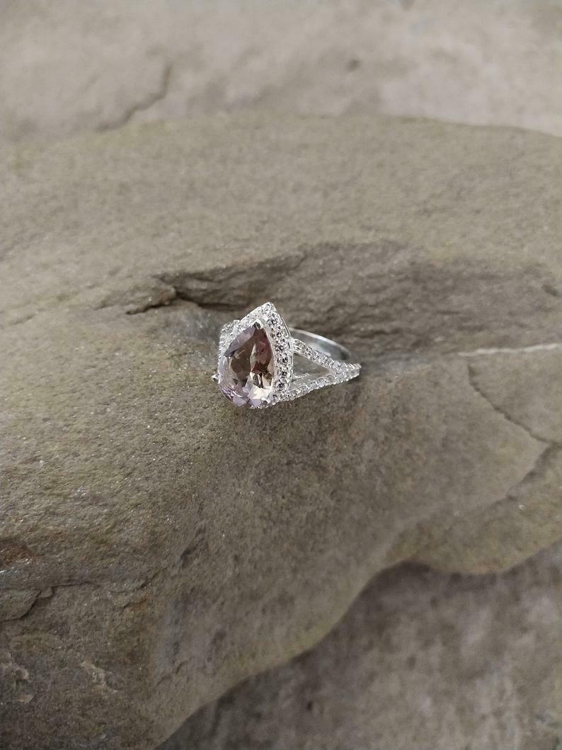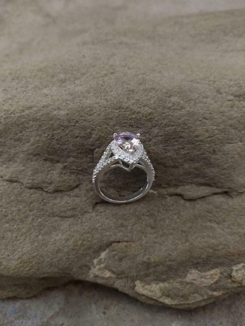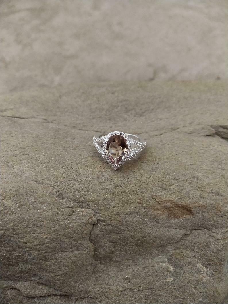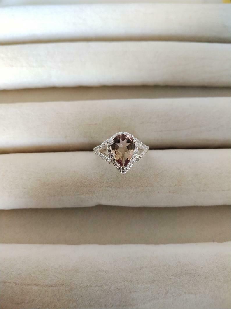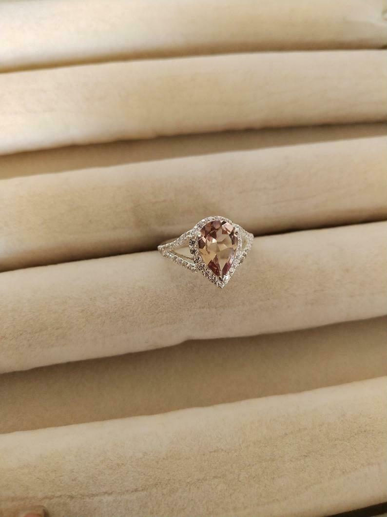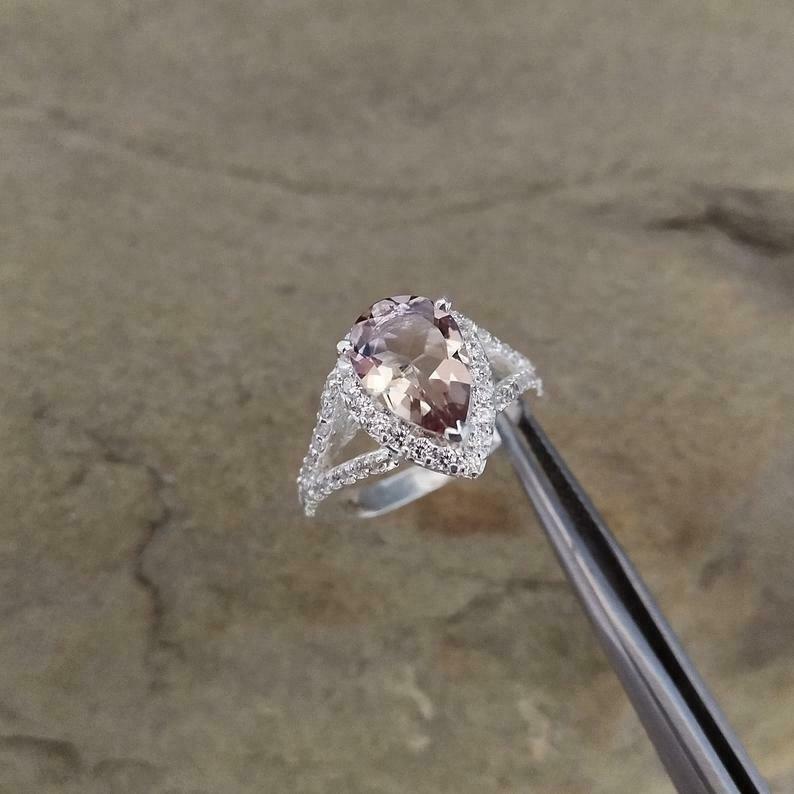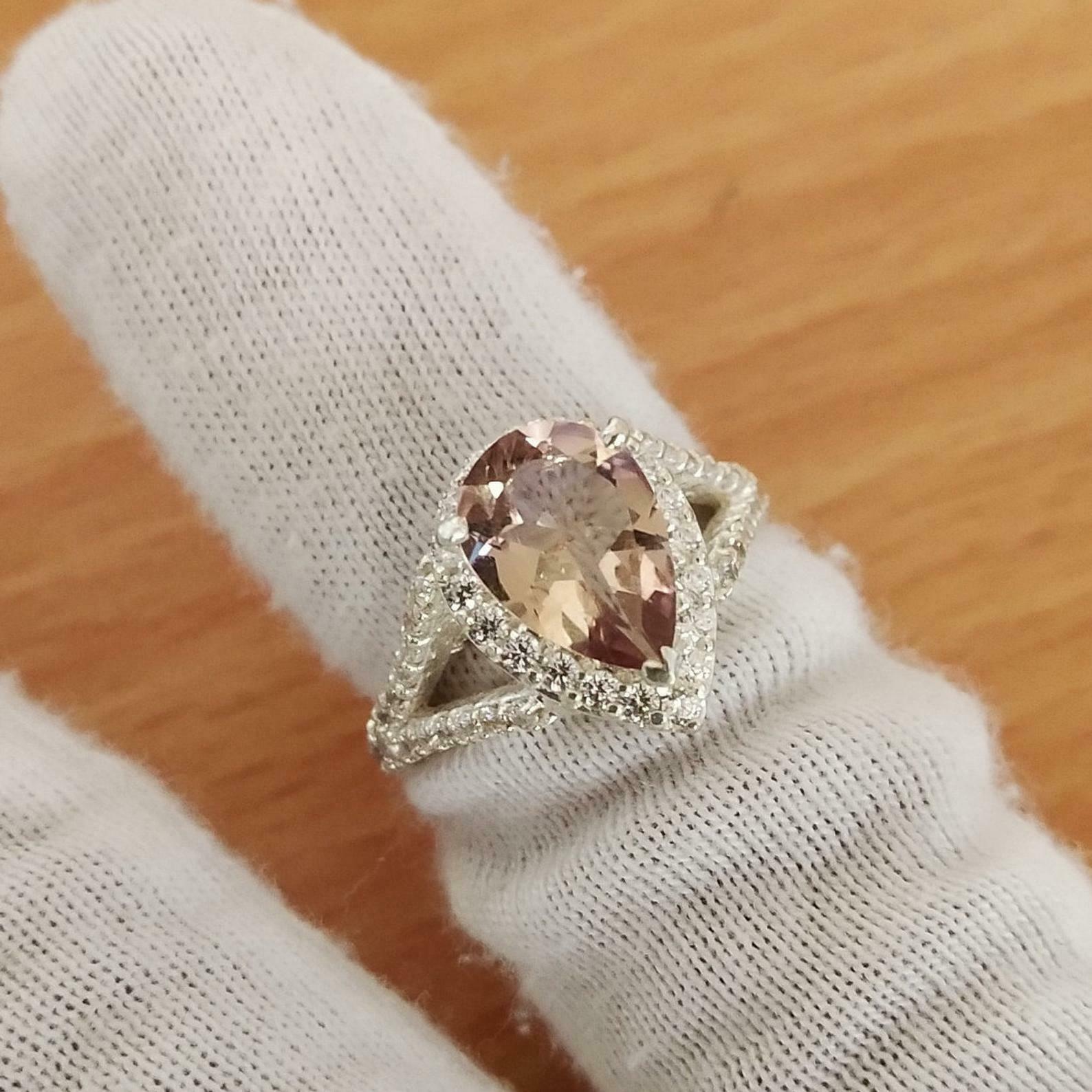 2ct Engagement Ring Pear Cut Peach Morganite Split Shank Halo 14k WhiteGold Over