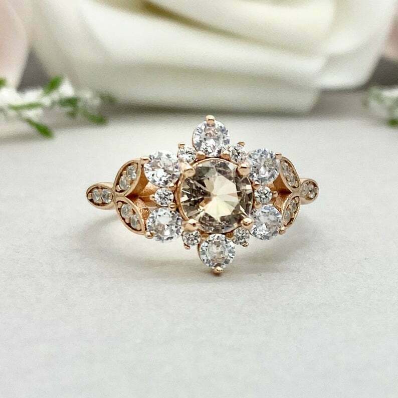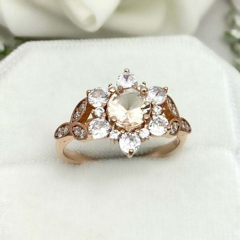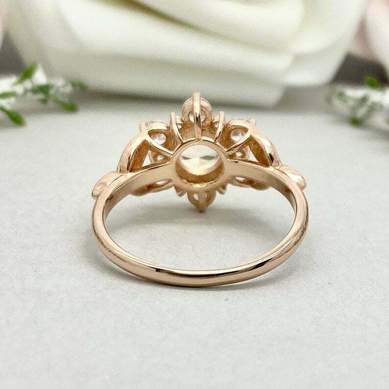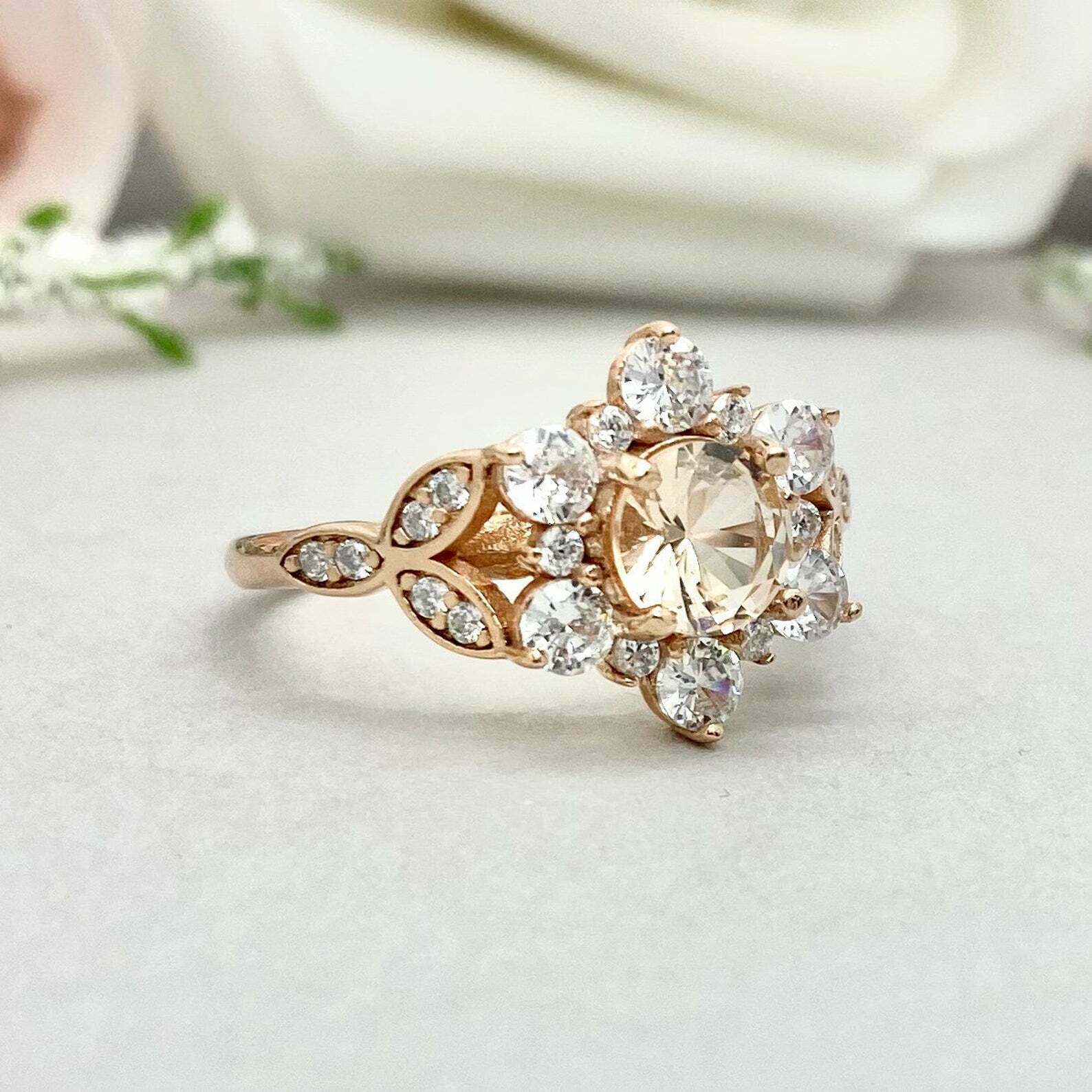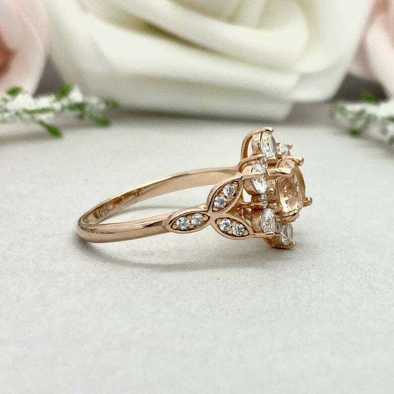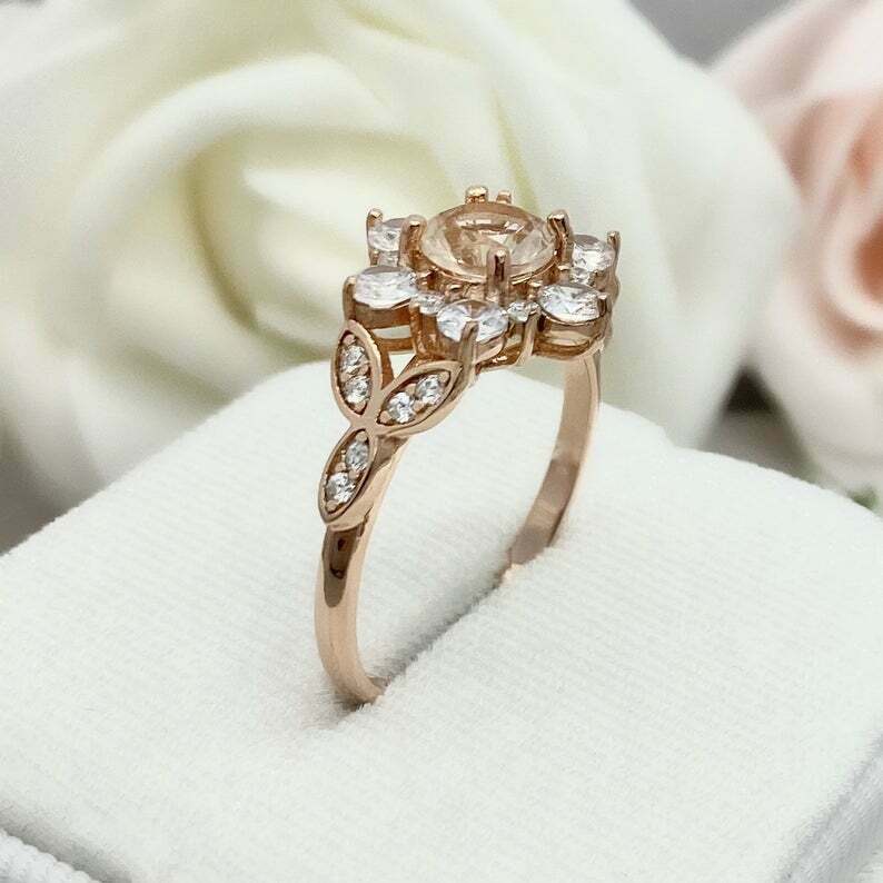 2ct Engagement Ring Round Cut Peach Morganite Diamond Floral 14k RoseGold Finish
