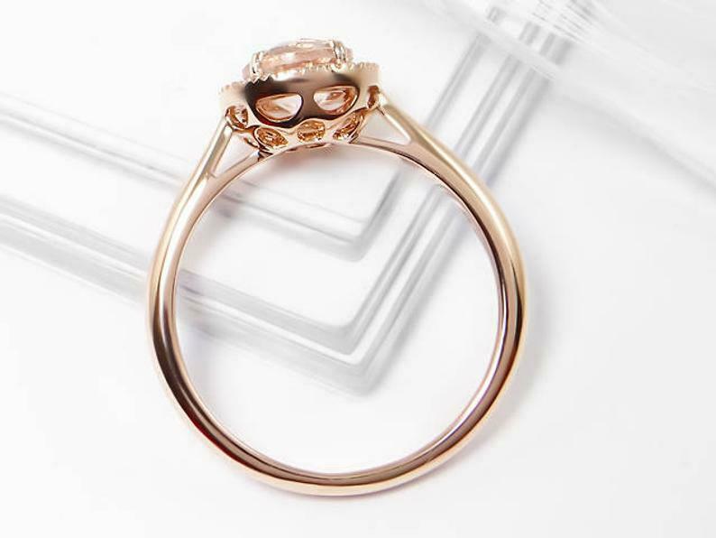 2ct Engagement Ring Round Cut Peach Morganite Halo Solitaire 14k RoseGold Finish