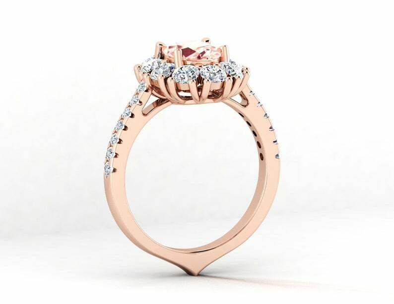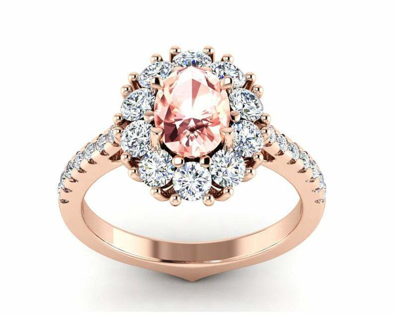 2ct Oval Cut Peach Morganite Floral Cluster Halo Engagement Ring 14k Rose Gold Finish