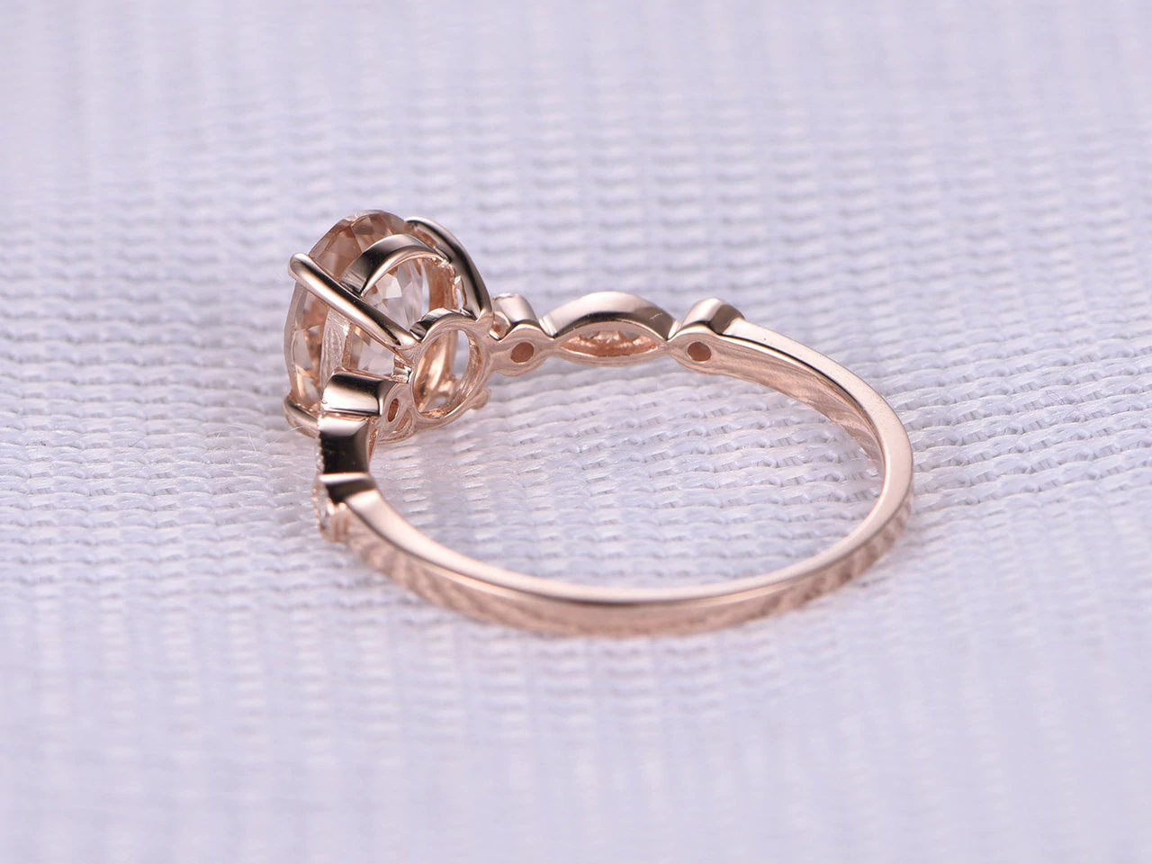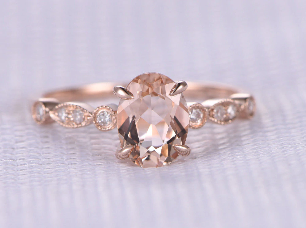 2ct Oval Cut Morganite Milgrain Solitaire with Accents Ring 14k Rose Gold Finish