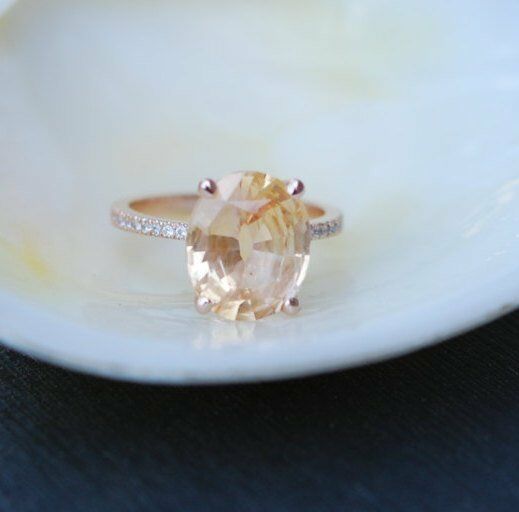 2ct Oval Cut Peach Morganite Diamond Accent Engagement Ring 18k Rose Gold Finish