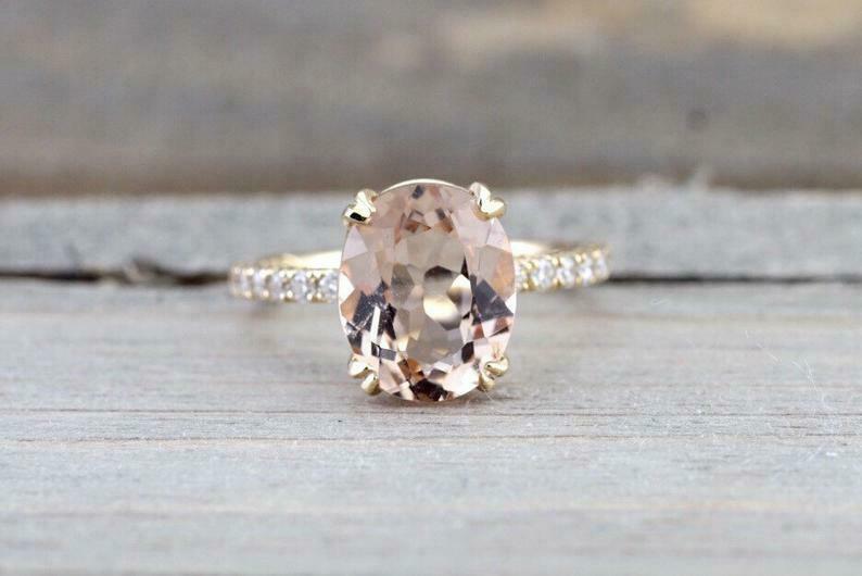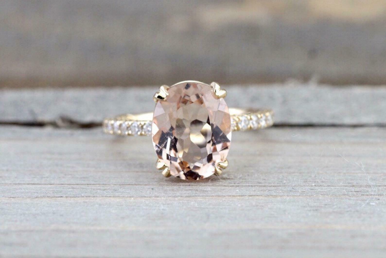 2ct Oval Cut Peach Morganite Engagement Ring 14k Yellow Gold Over Diamond Accents