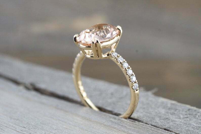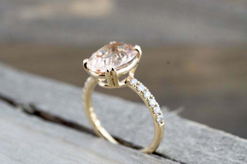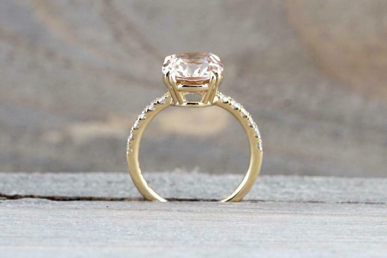 2ct Oval Cut Peach Morganite Engagement Ring 14k Yellow Gold Over Diamond Accent