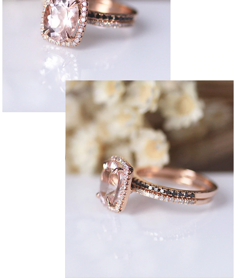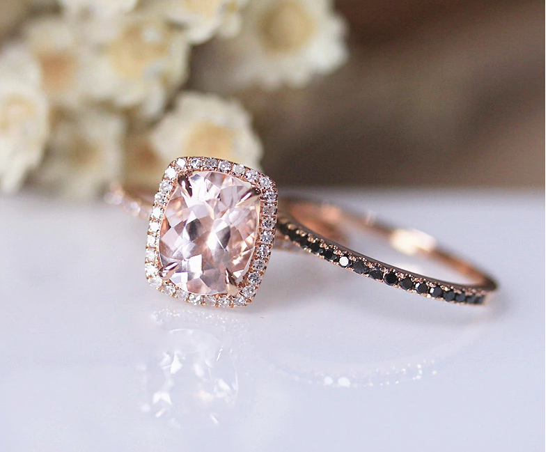2ct Oval Cut Peach Morganite Engagement Ring 18k RoseGold Finish Halo Bridal Set
