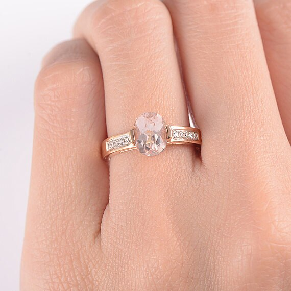 2ct Oval Cut Peach Morganite Engagement Ring Accents Solitaire 14k Rose Gold Over