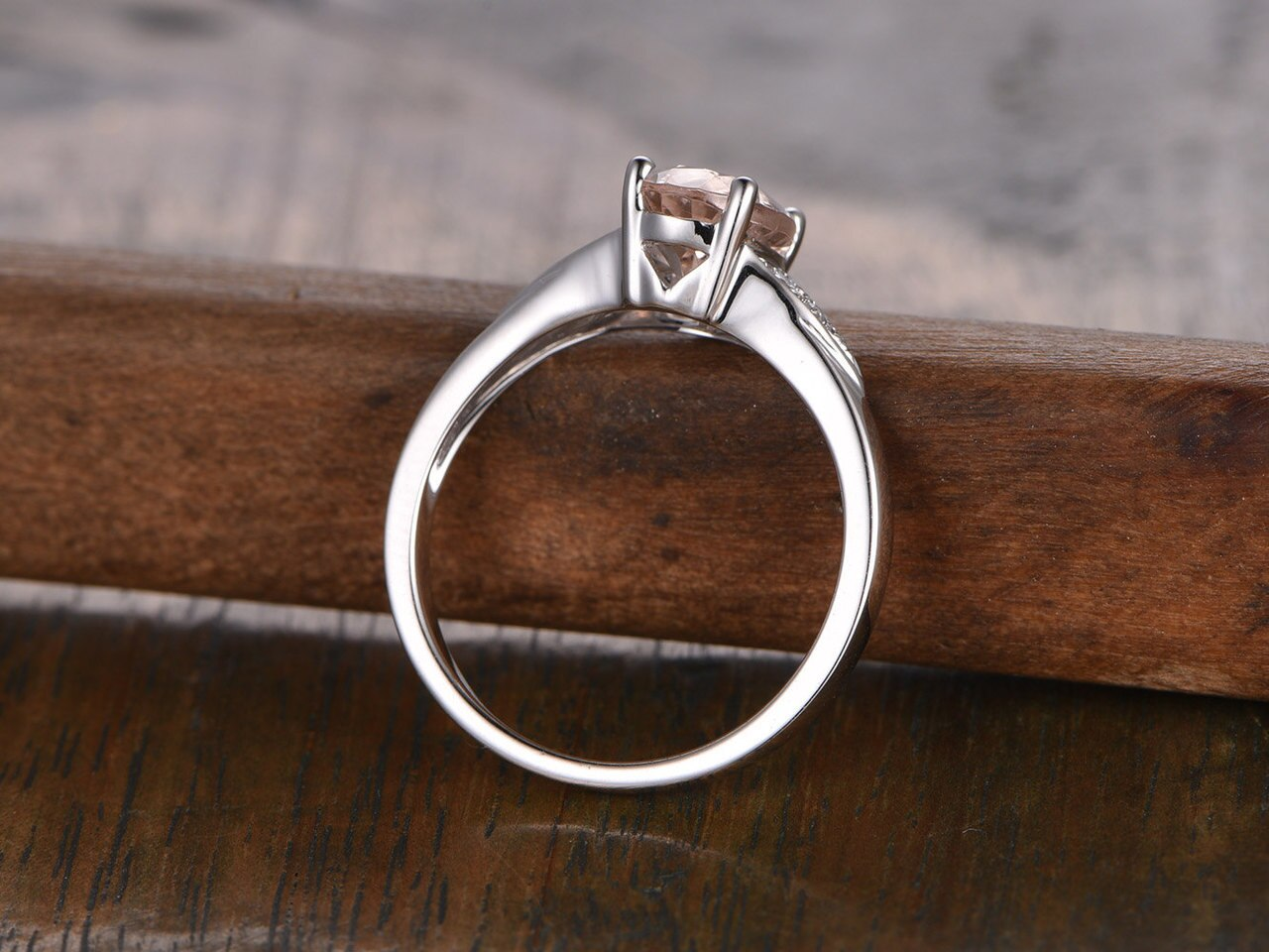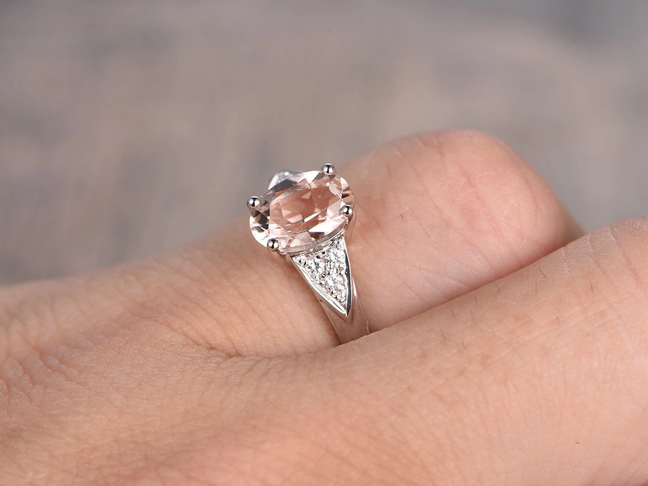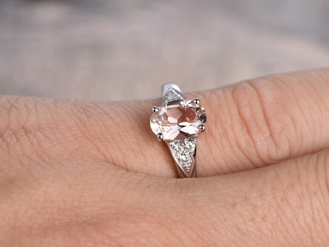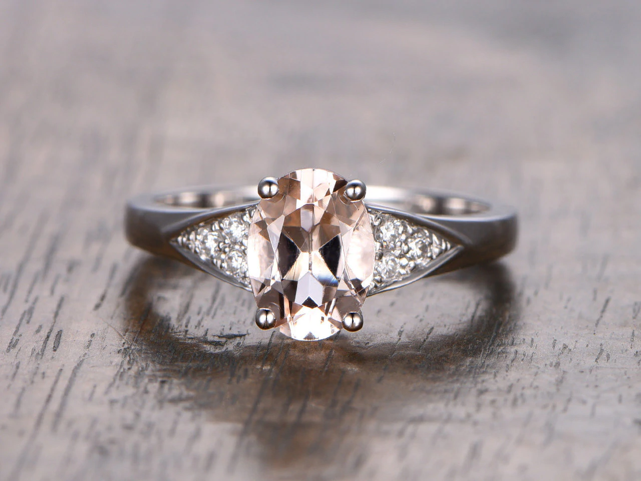 2ct Oval Cut Peach Morganite Engagement Ring Diamond Accent 14k White Gold Finish