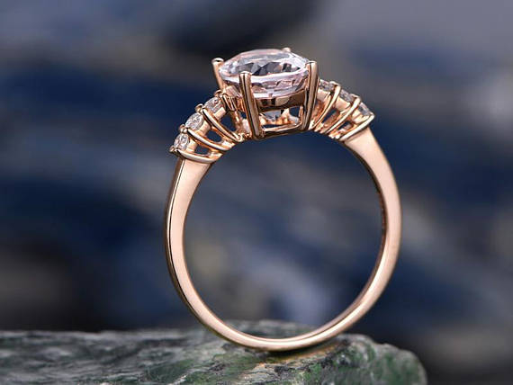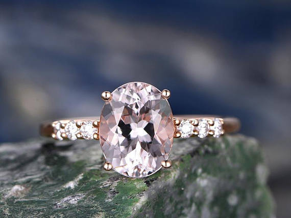 2ct Oval Cut Peach Morganite Engagement Ring Diamond Accents 14k RoseGold Finish