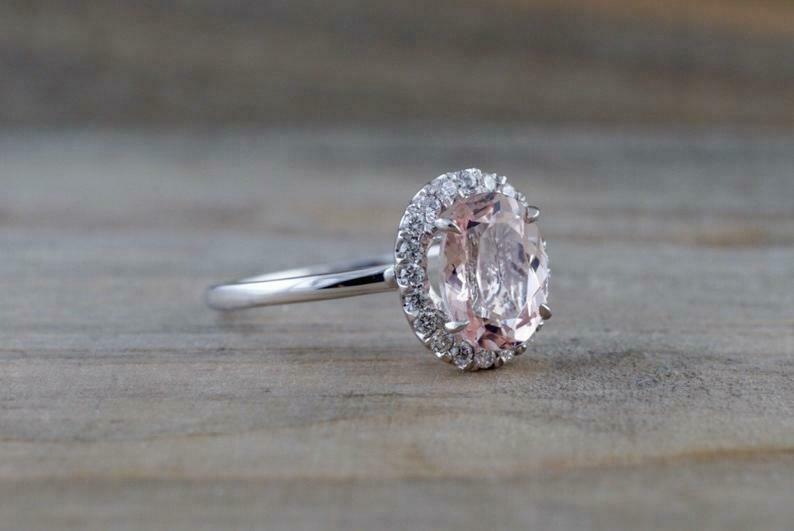 2ct Oval Cut Peach Morganite Engagement Ring Diamond Halo 18k White Gold Finish