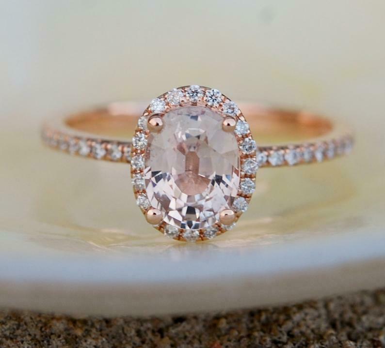 2ct Oval Cut Peach Morganite Engagement Ring Halo 14k Rose Gold Over with Accent