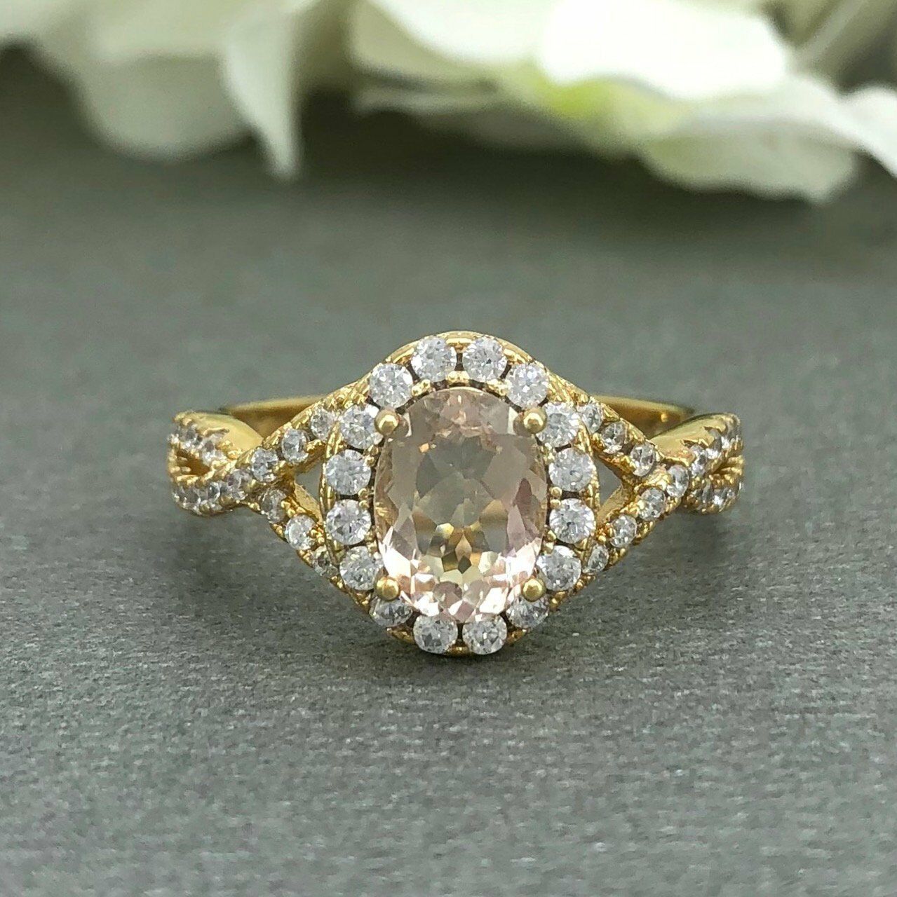 2ct Oval Cut Peach Morganite Halo Infinity Engagement Ring 14k Yellow Gold Over