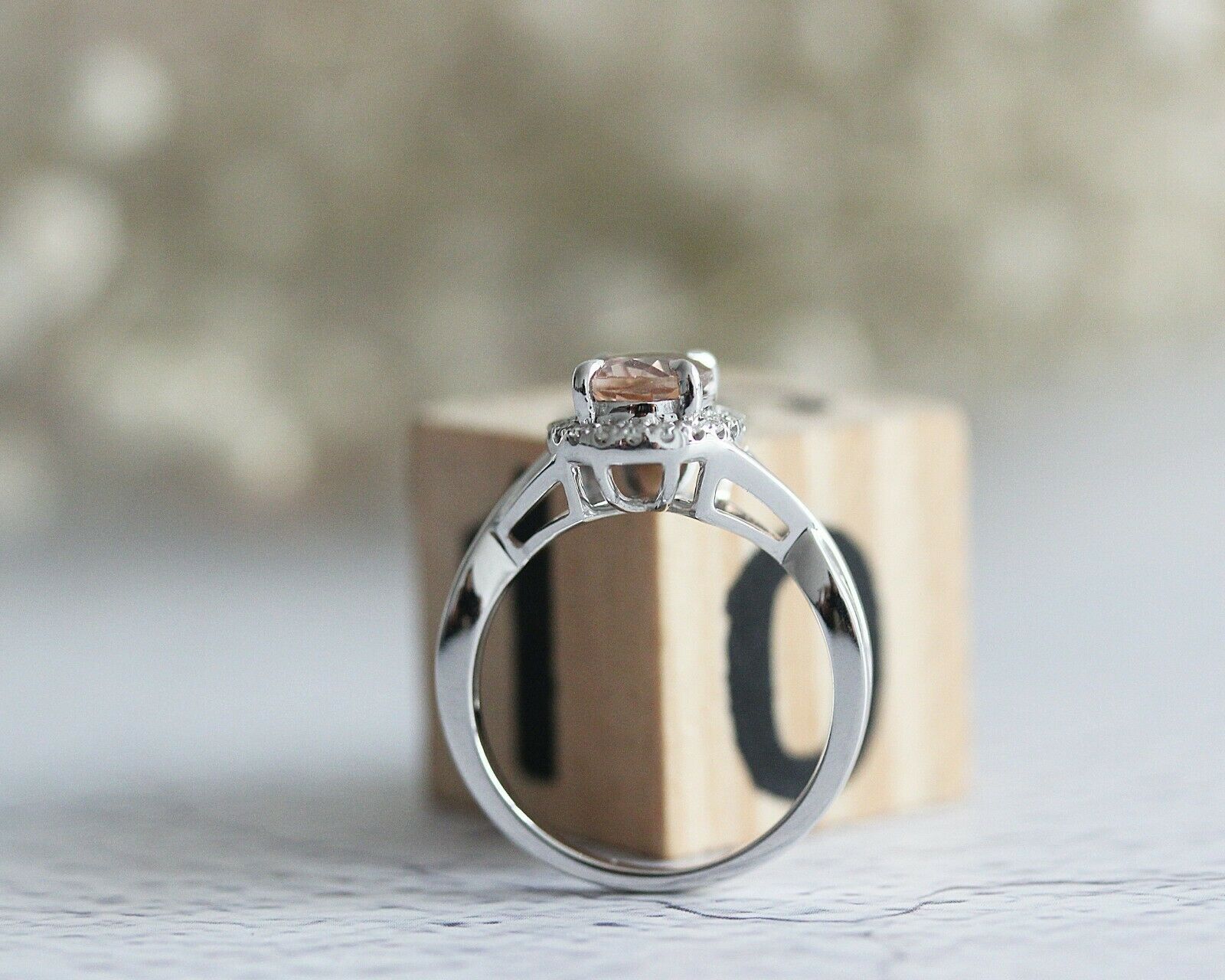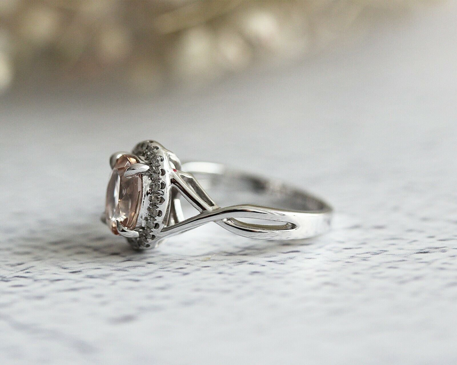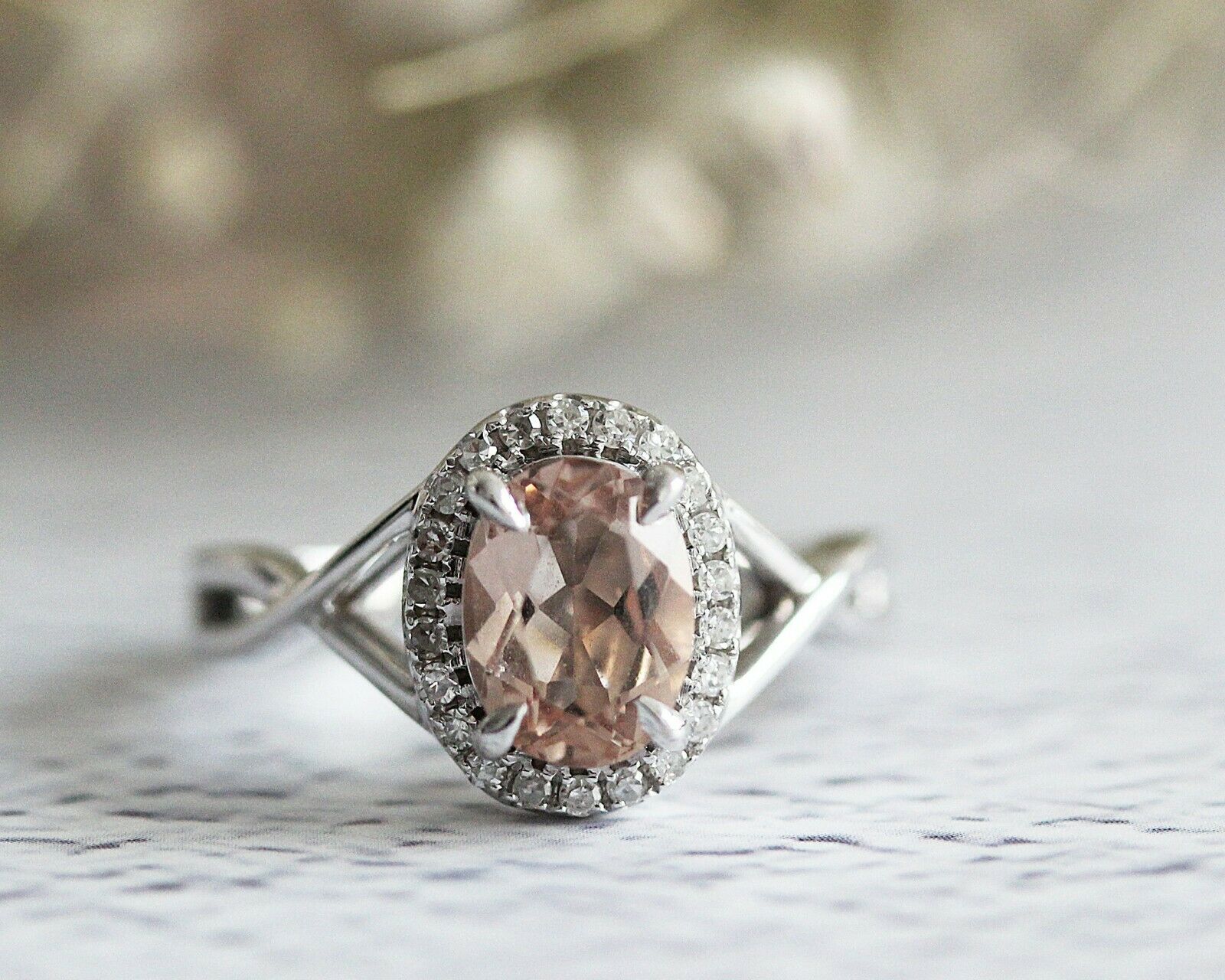 2Ct Oval Cut Peach Morganite Split Band Halo Engagement Ring 14K White Gold Over