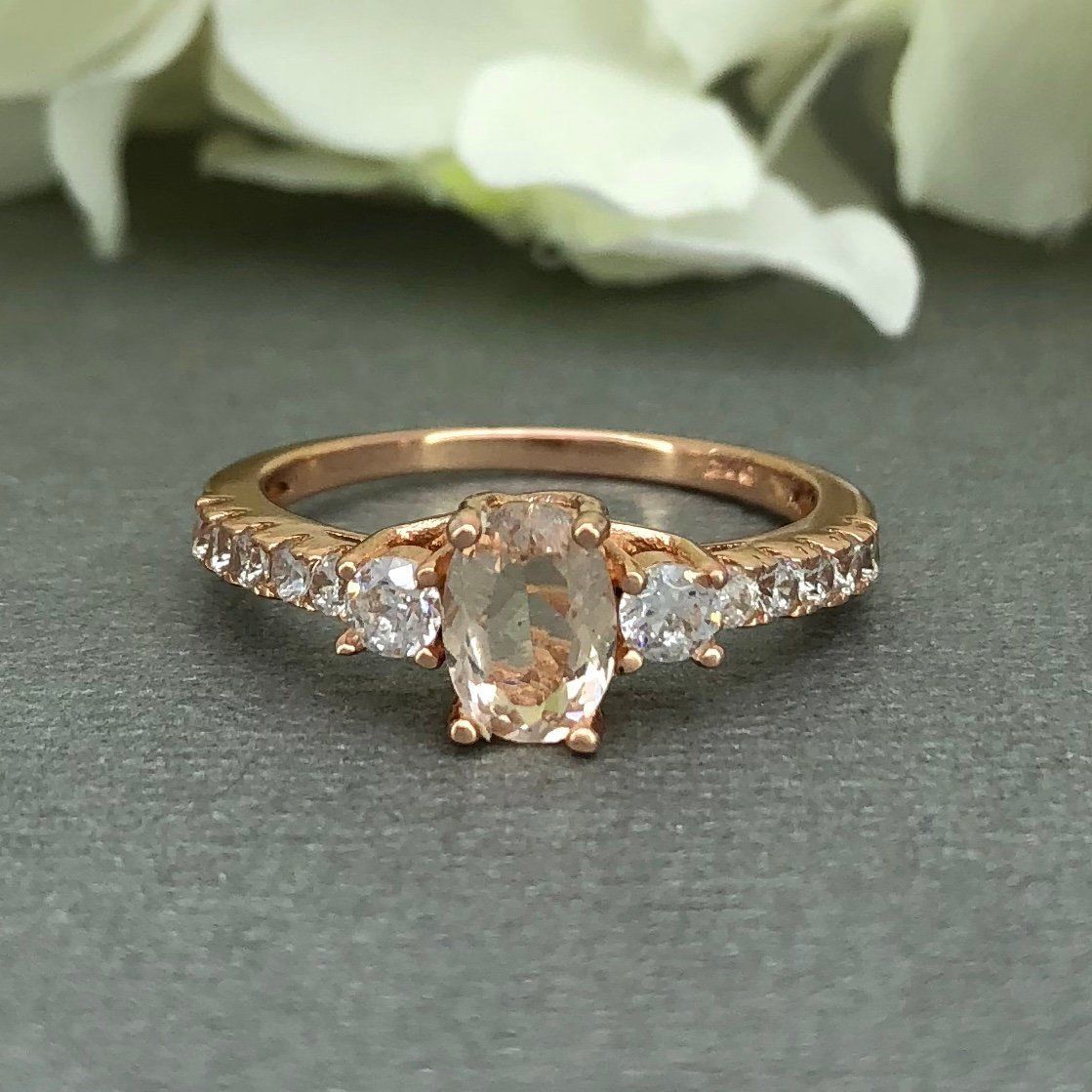 2ct Oval Cut Peach Morganite Three Stone Engagement Ring 14k Rose Gold Finish