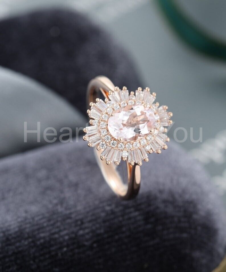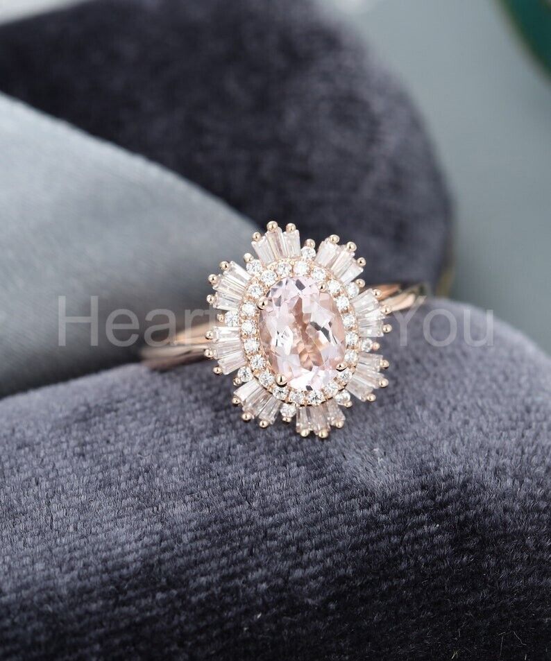 2ct Oval Cut Simulated Morganite Cocktail Engagement Ring 14k Rose Gold Plated