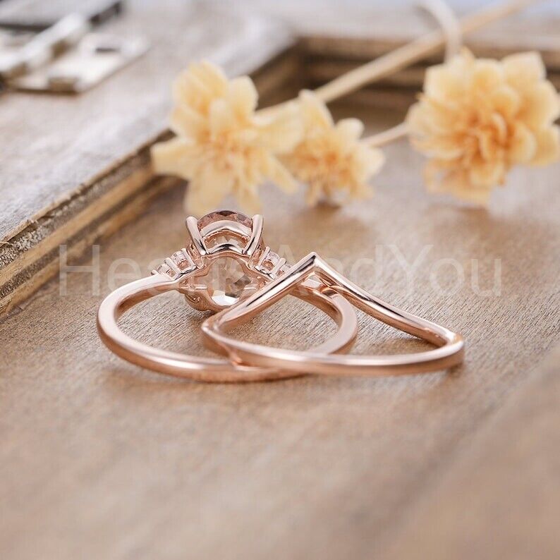 2ct Oval Cut Simulated Morganite Curved Wedding Bridal Set 14k Rose Gold Plated