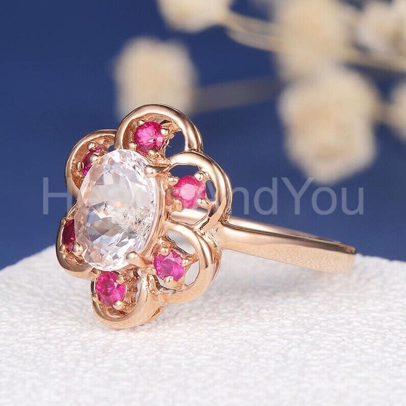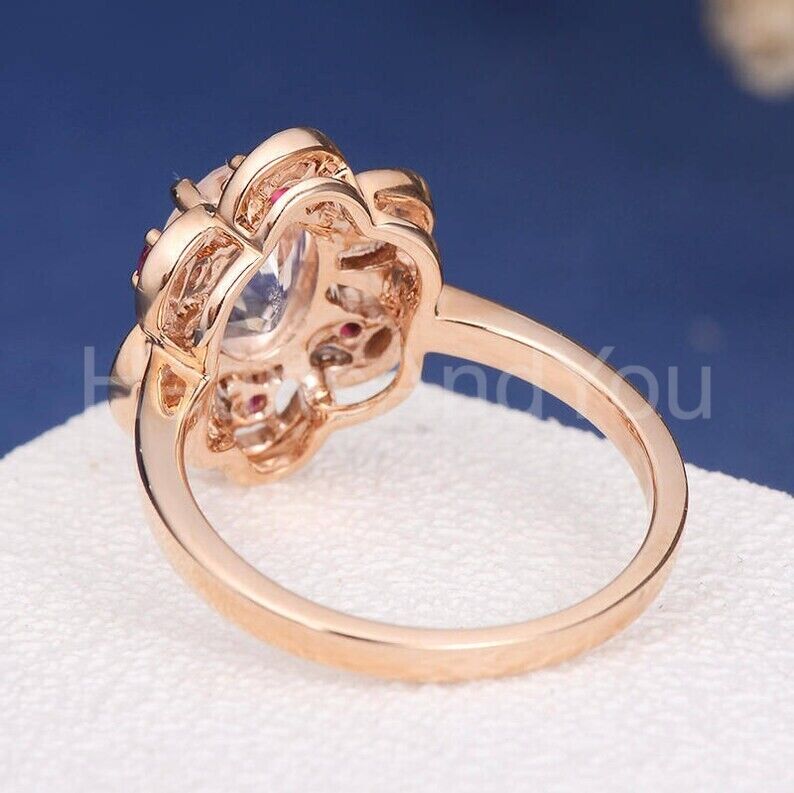 2ct Oval Cut Simulated Peach Morganite Floral Cocktail Ring 14k Rose Gold Plated