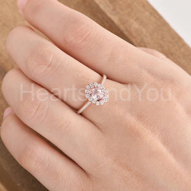 2ct Oval Cut Simulated Peach Morganite Halo Engagement Ring 14k Rose Gold Plated
