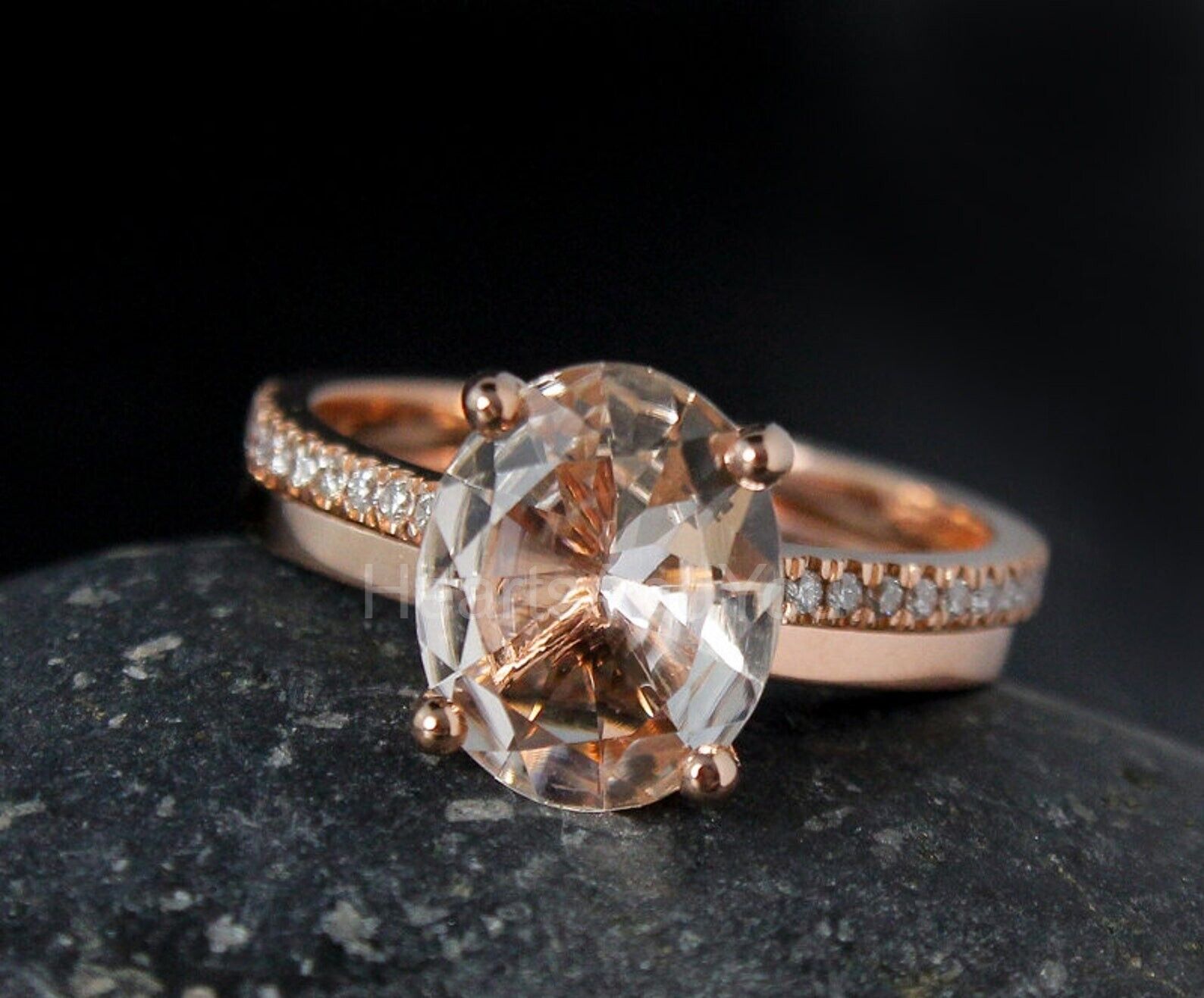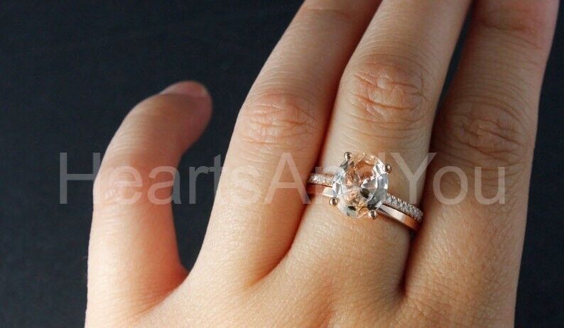 2ct Oval Cut Simulated Peach Morganite Solitaire Bridal Set 14k Rose Gold Plated