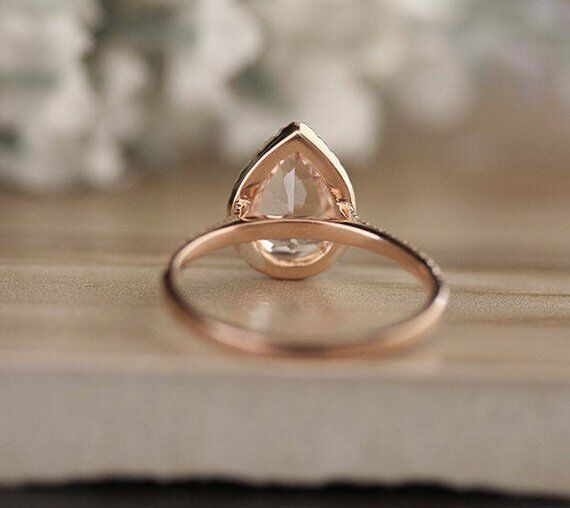 2ct Pear Cut Champagne Morganite Solitaire Engagement Ring 18k Rose Gold Finish