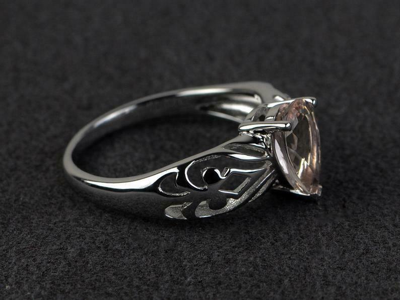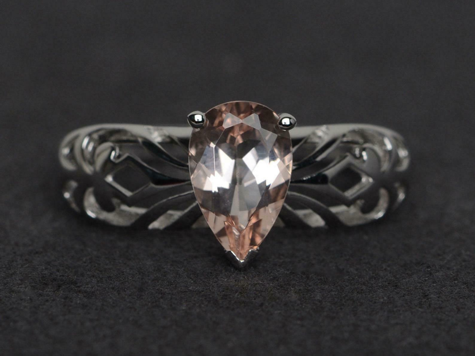2ct Pear Cut Peach Morganite Filigree Shank Solitaire Ring 14k White Gold Finish