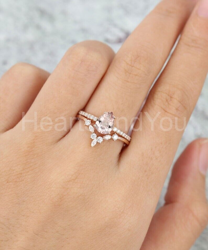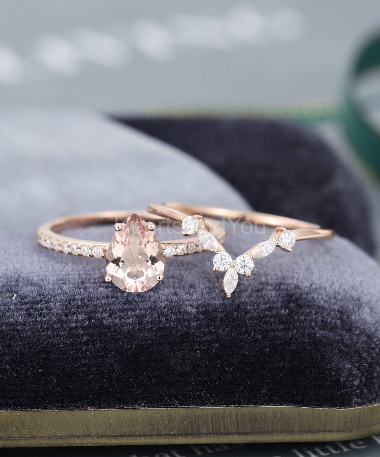 2ct Pear Simulated Peach Morganite Anniversary Bridal Set 14k Rose Gold Plated