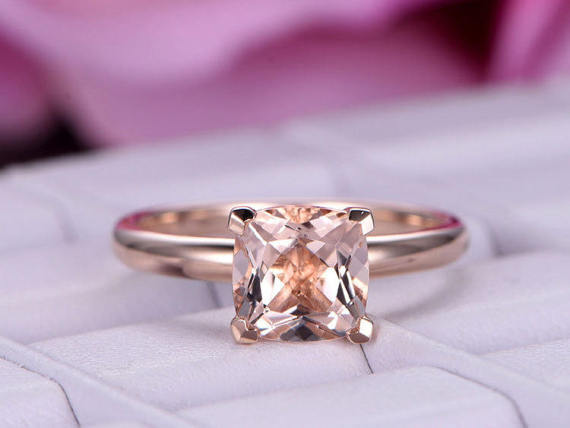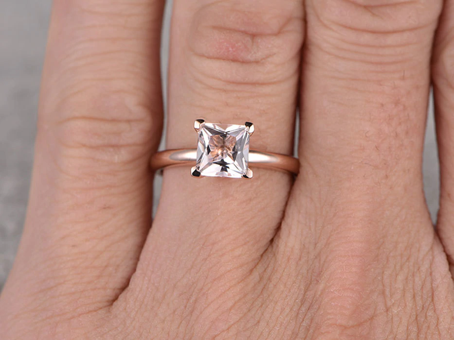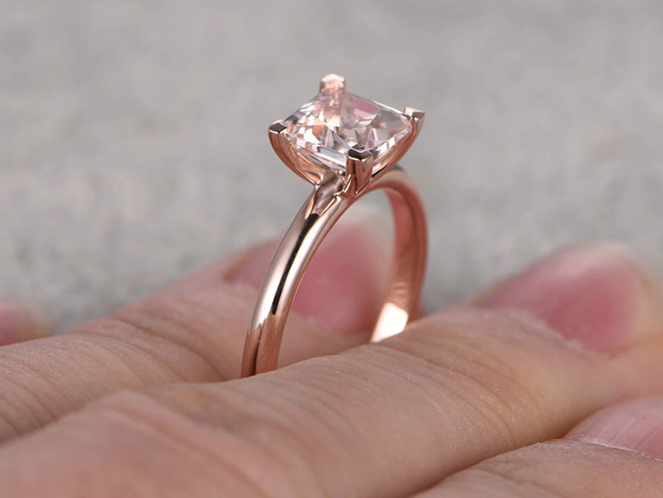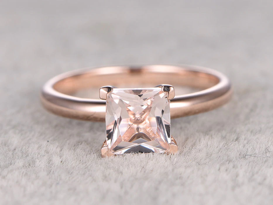2ct Princess Cut Peach Morganite Engagement Ring Solitaire 14k Rose Gold Finish