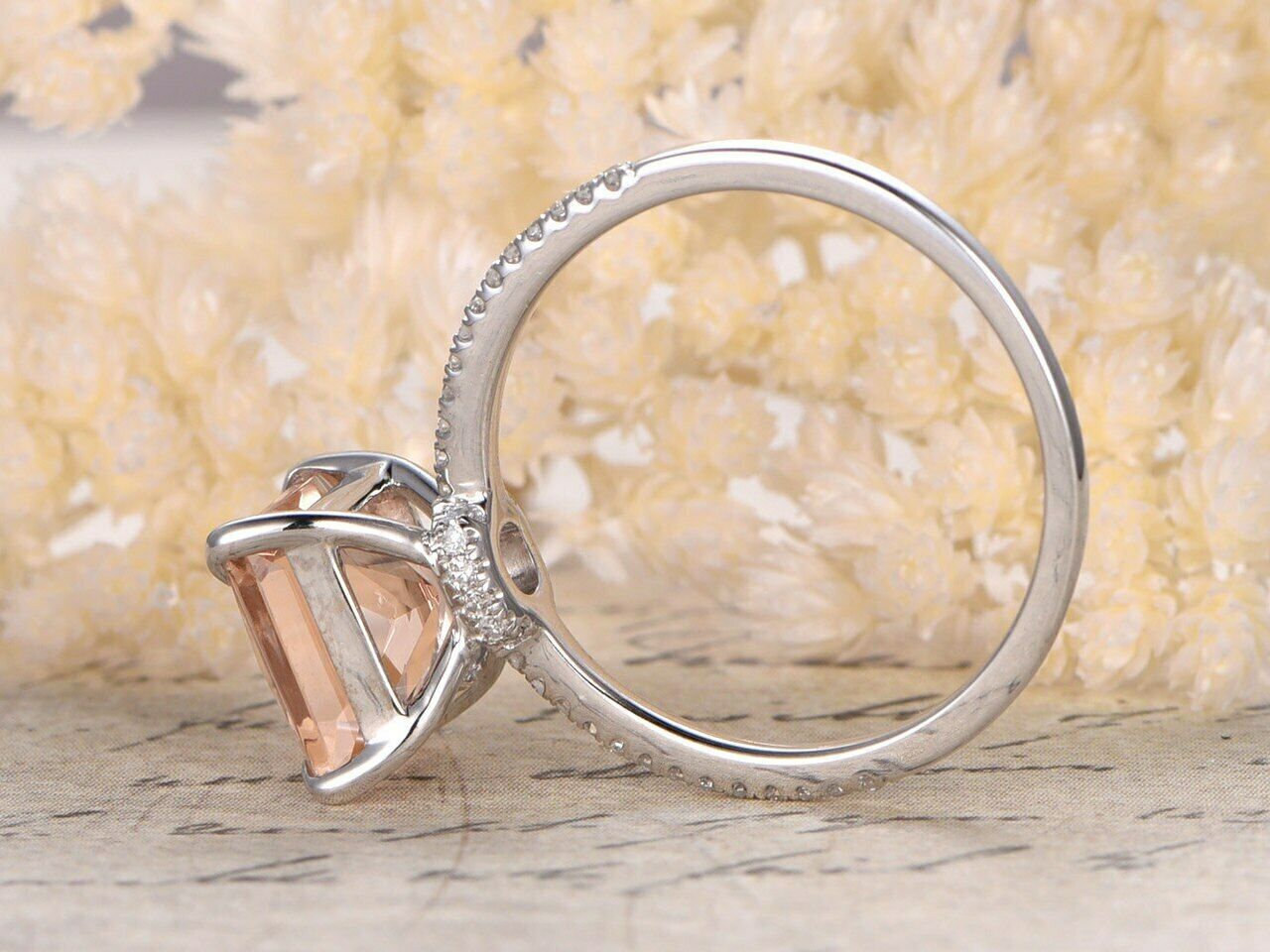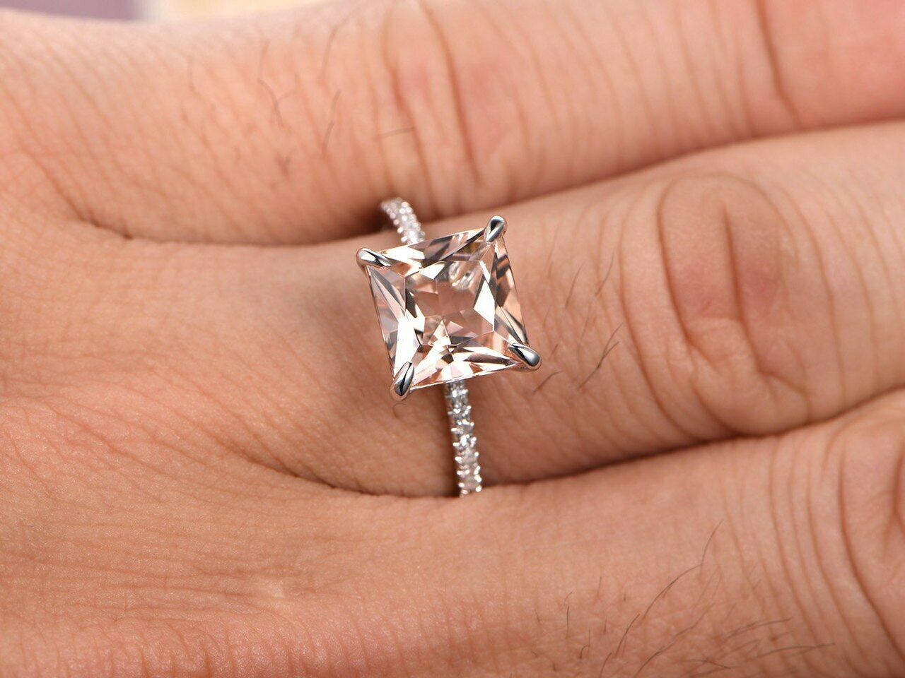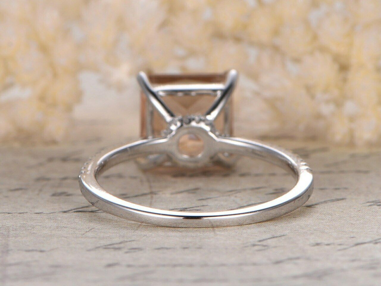 2ct Princess Cut Morganite Engagement Ring Accents with Solitaire 14k White Gold Over