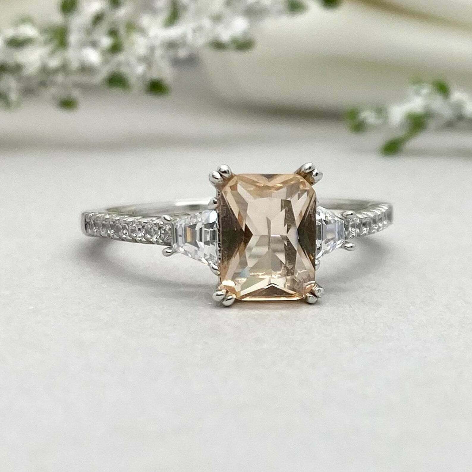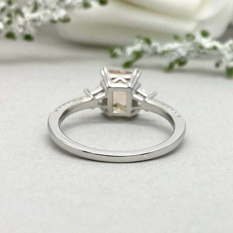 2ct Radiant Cut Peach Morganite Solitaire with Accent Ring 14k White Gold Finish