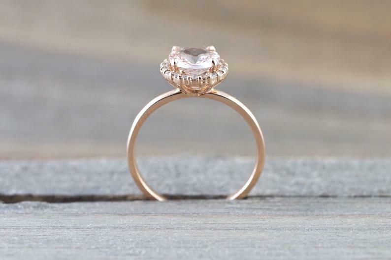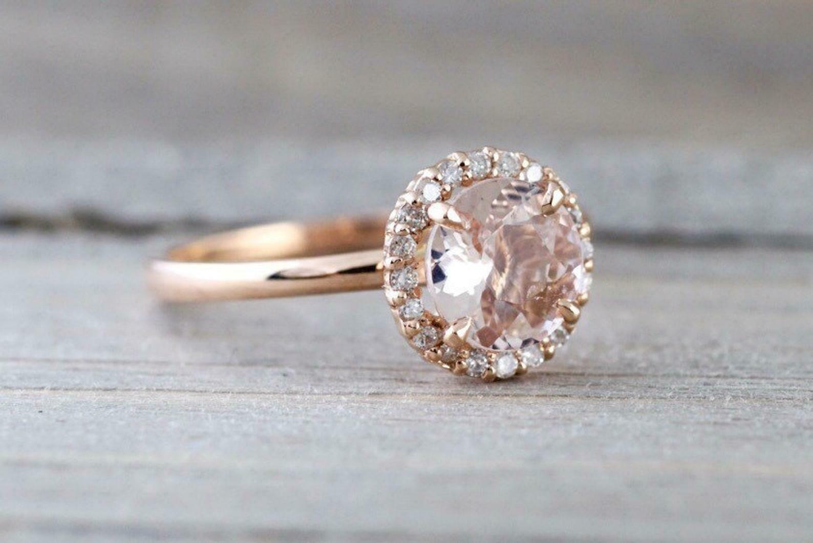 2ct Round Cut Morganite Engagement Ring Diamond Halo Solitaire 18k Rose Gold Over