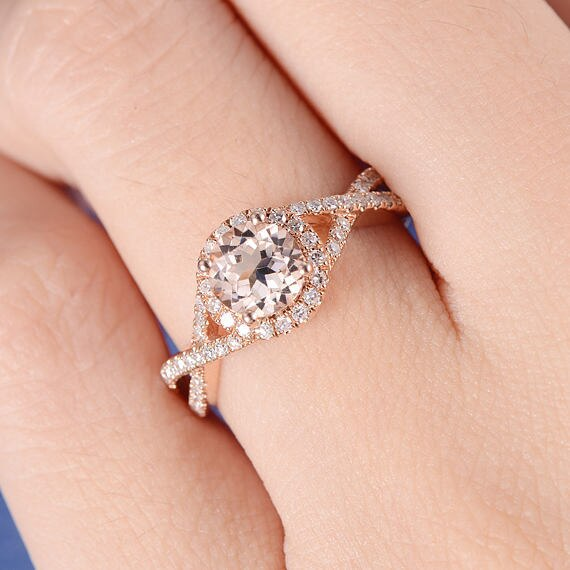 2ct Round Cut Morganite Engagement Ring Split Shank Infinity 14k Rose Gold Over