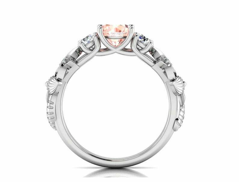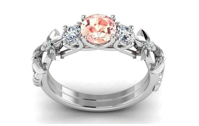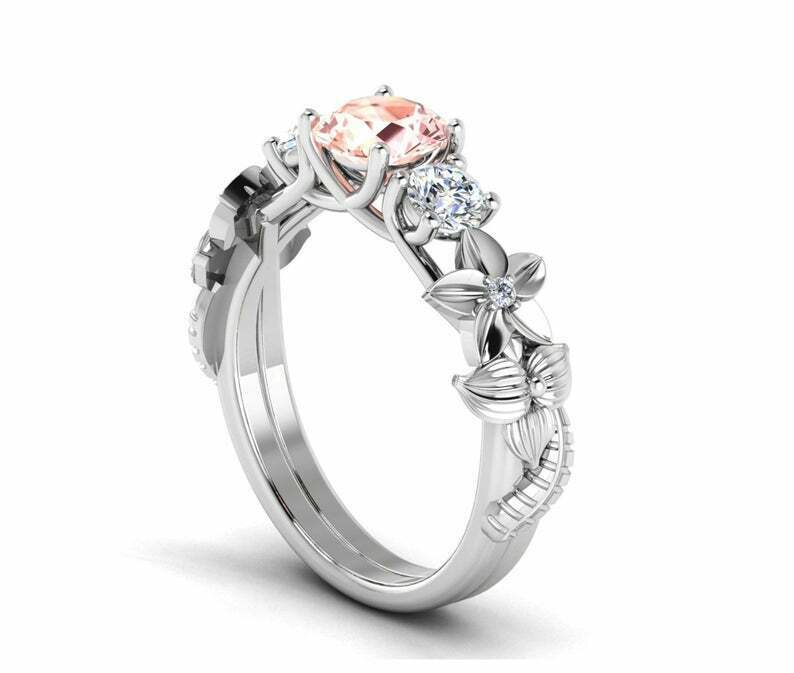 2ct Round Cut Morganite Flower Stylish Solitaire with Accent Engagement Ring 14k White Gold Over