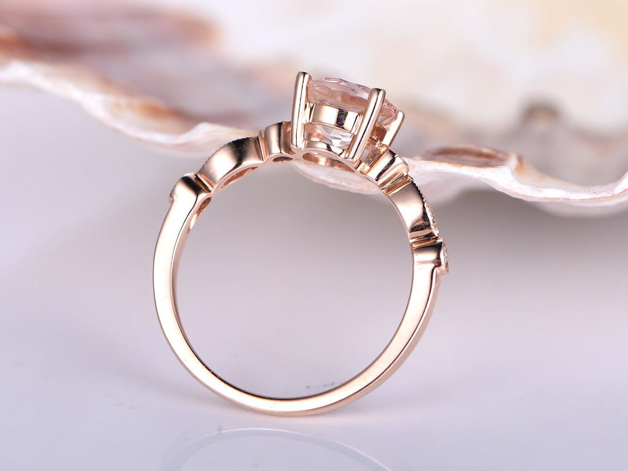 2ct Round Cut Morganite Solitaire with Round Accents Ring 14k Rose Gold Finish