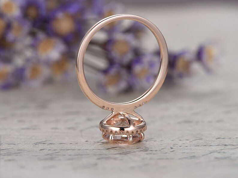2ct Round Cut Peach Morganite Diamond Halo Solitaire Ring 14k Rose Gold Finish
