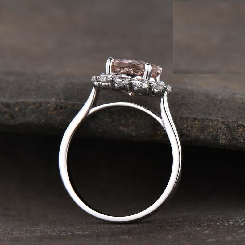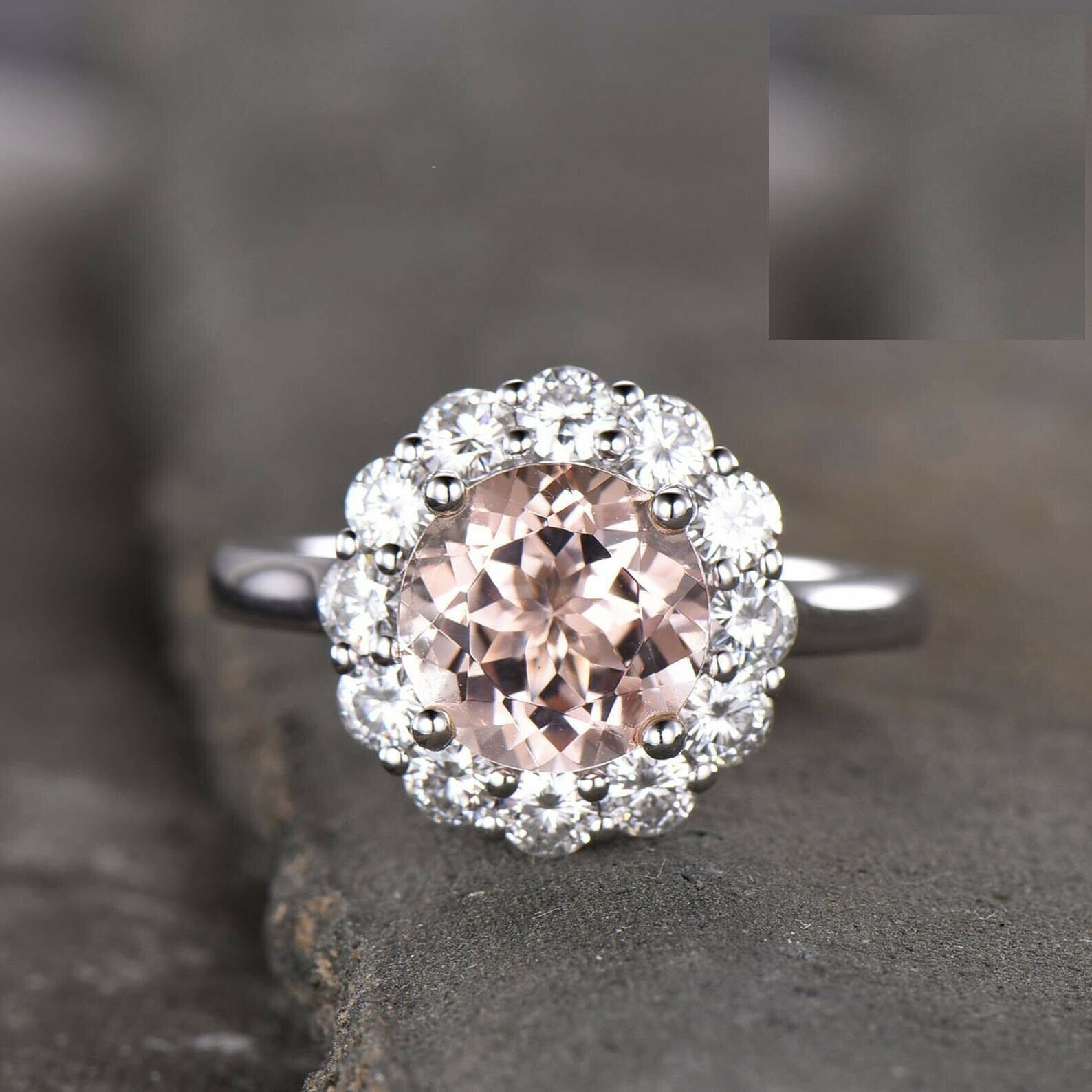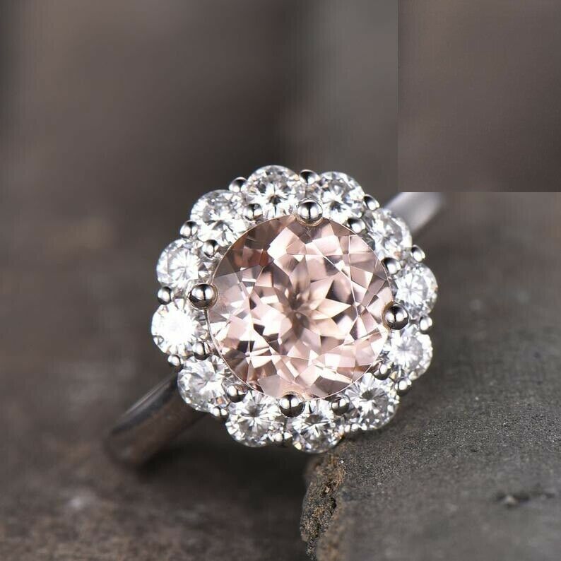 2ct Round Cut Peach Morganite Diamond Halo Solitaire Ring 14k White Gold Finish