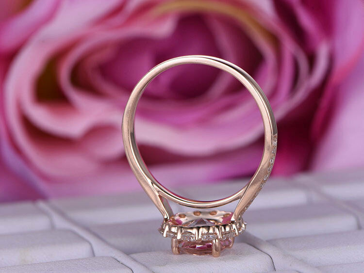 2ct Round Cut Peach Morganite Engagement Ring 14k Rose Gold Finish Halo Floral