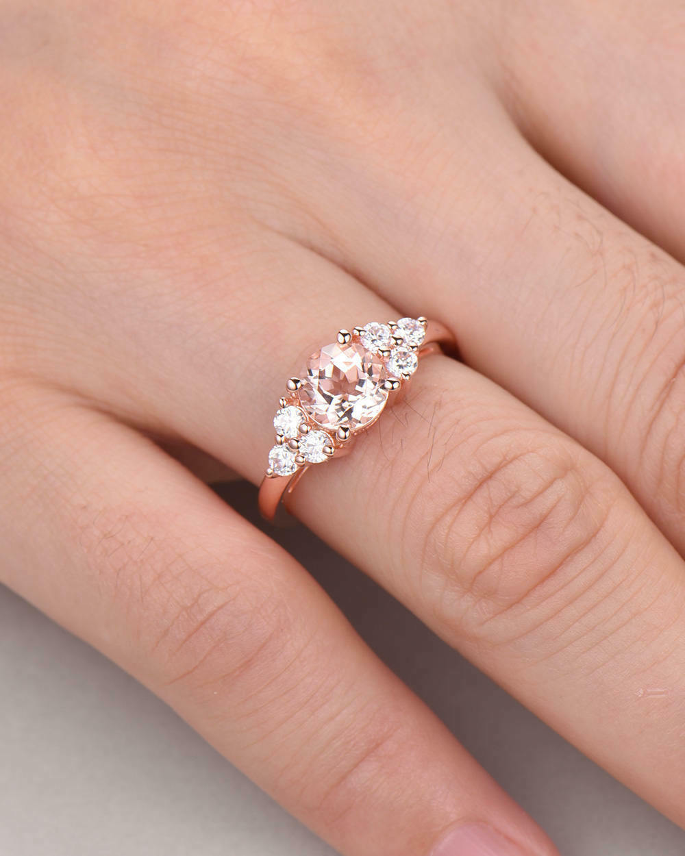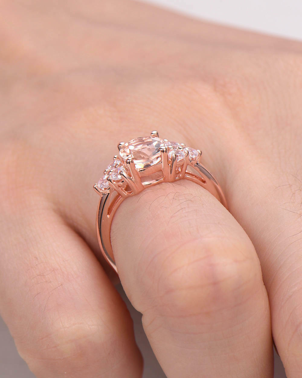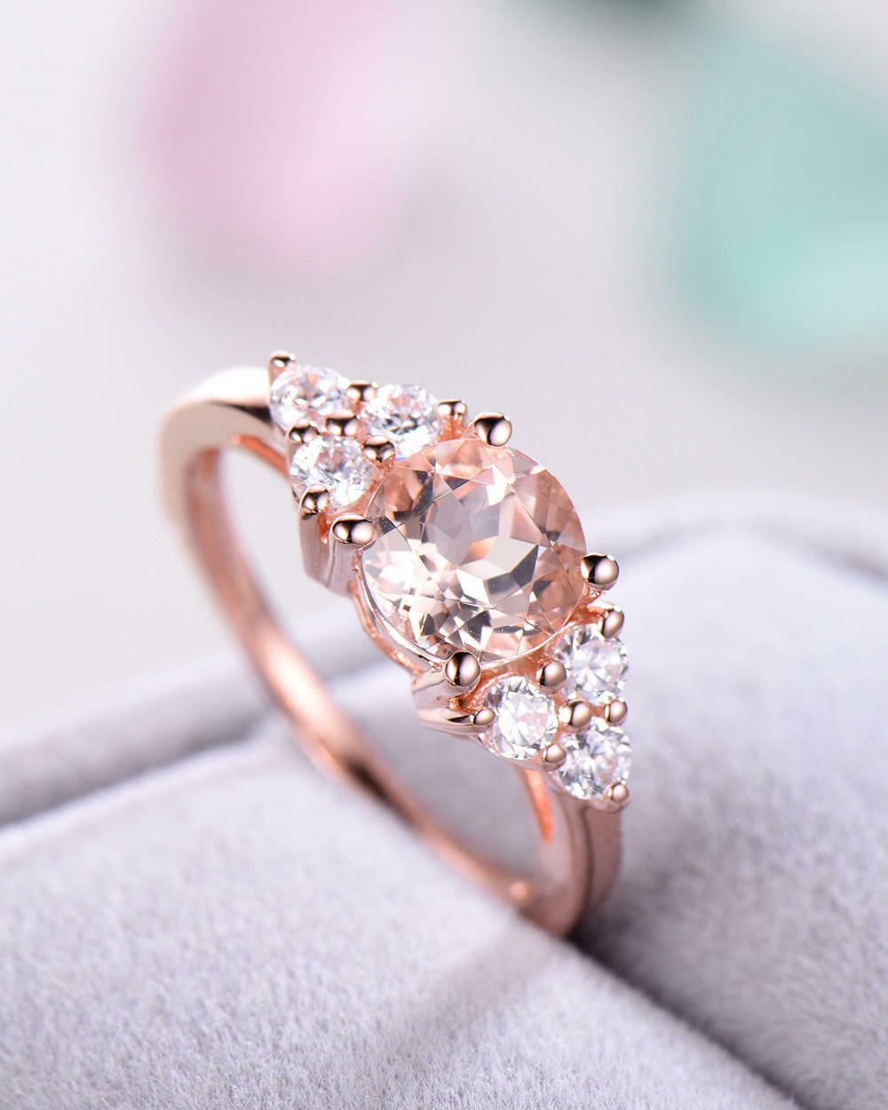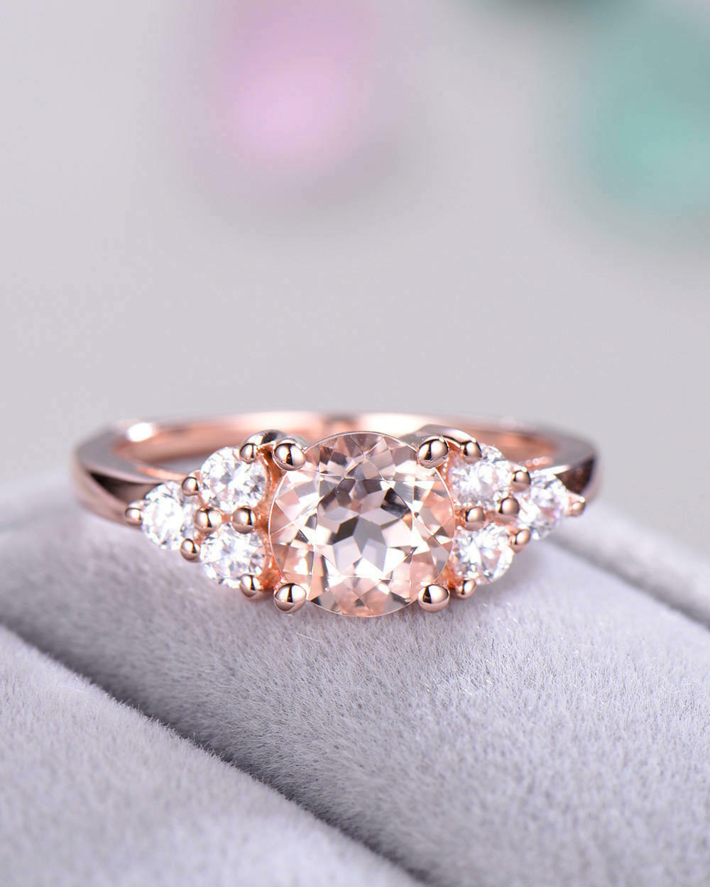 2Ct Round Cut Peach Morganite Engagement Ring 18K Rose Gold Over Diamond Accents
