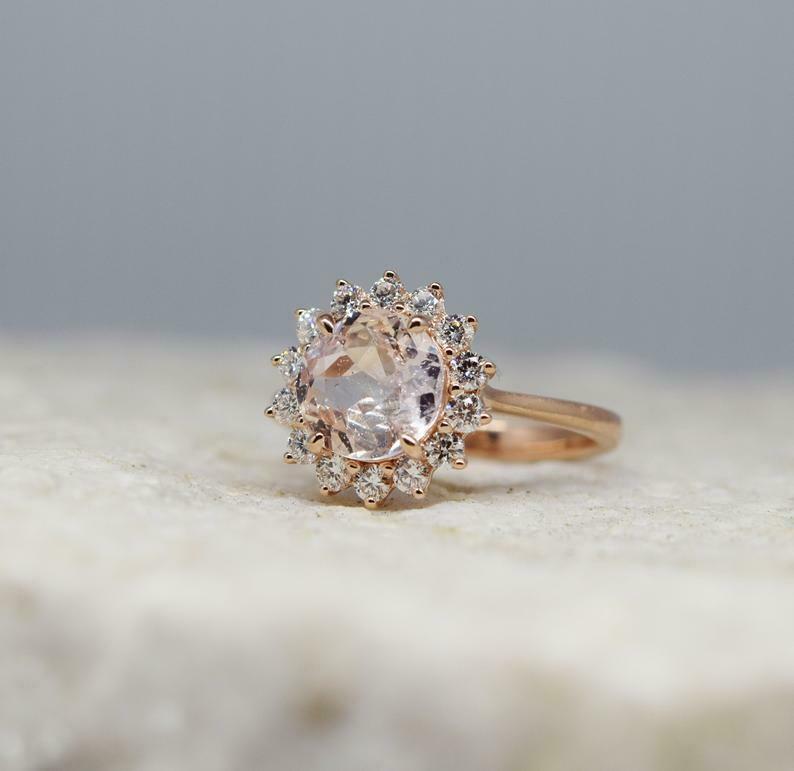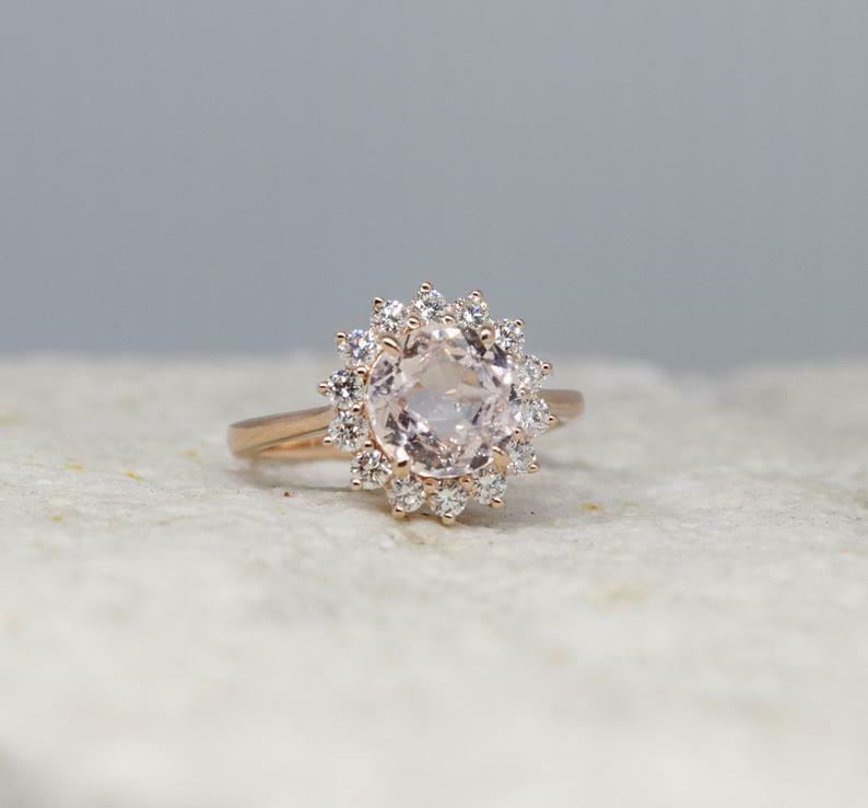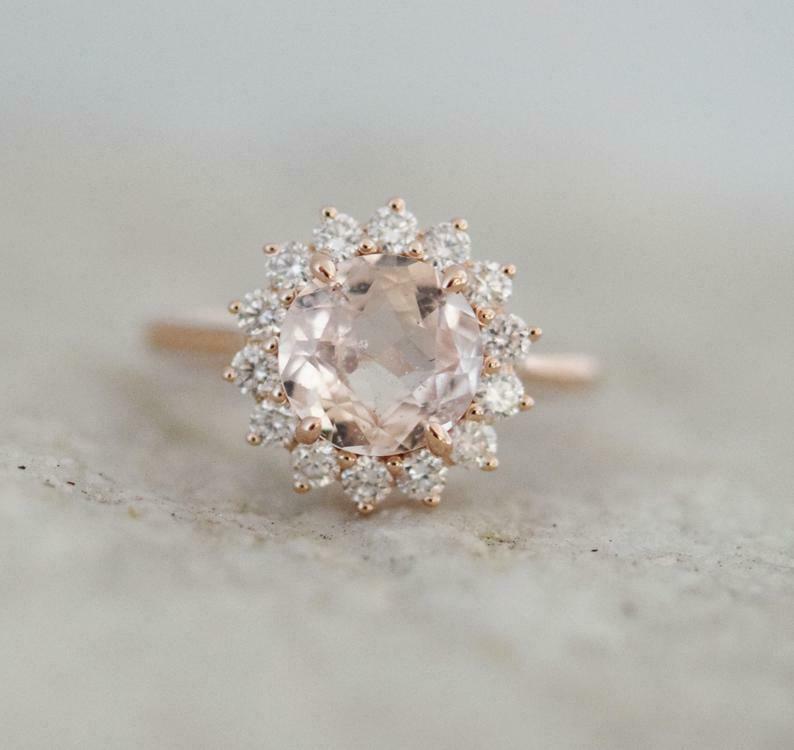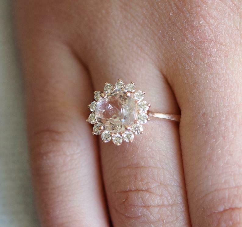 2ct Round Cut Peach Morganite Engagement Ring Diamond Floral 14k RoseGold Finish