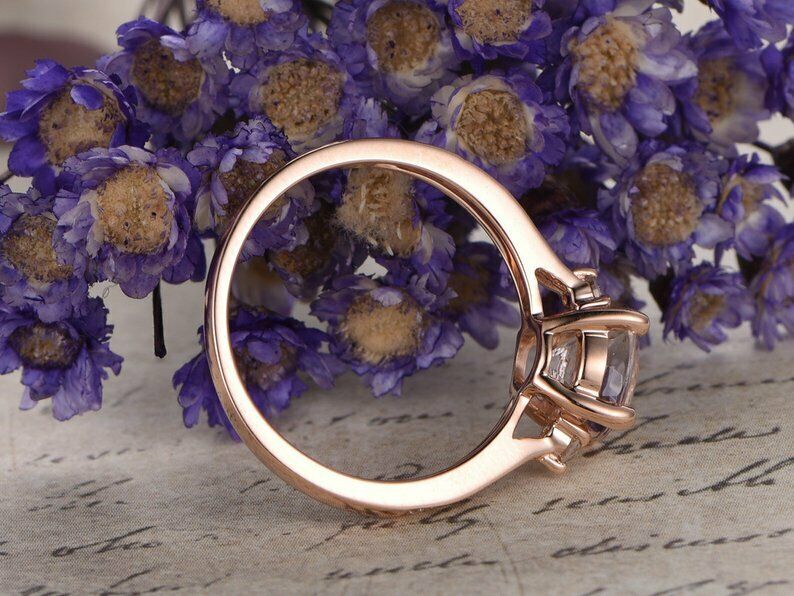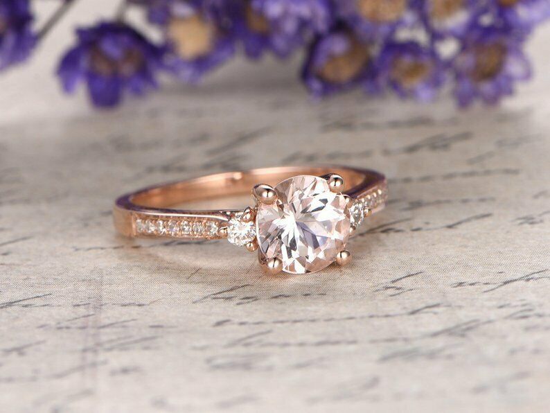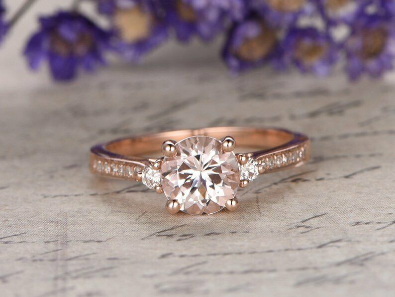 2ct Round Cut Peach Morganite Engagement Ring Diamond Trilogy 14k Rose Gold Over